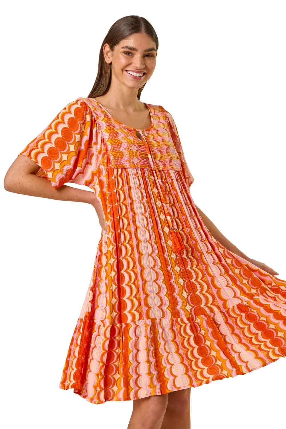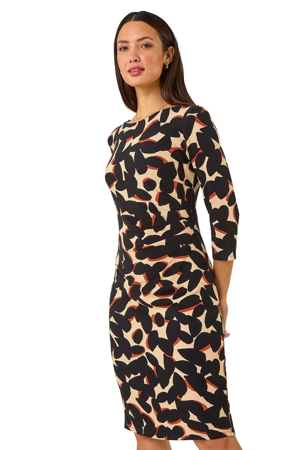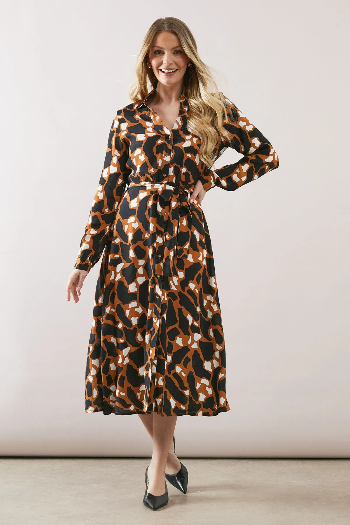 Sale!Abstract Print Viscose Button Through Shirt Dress