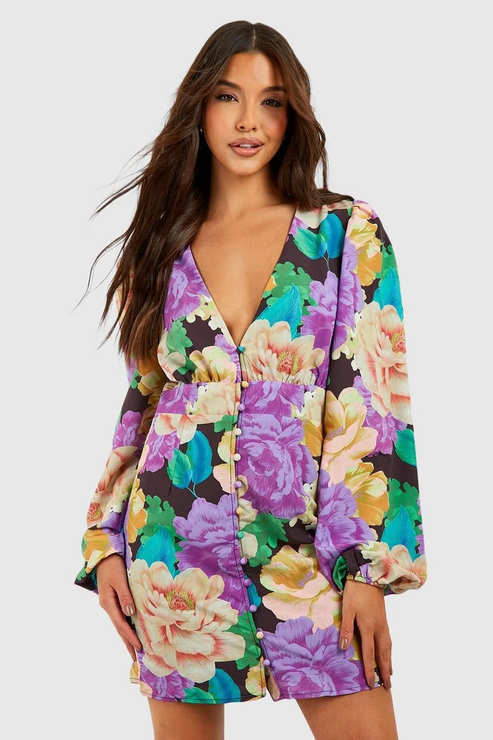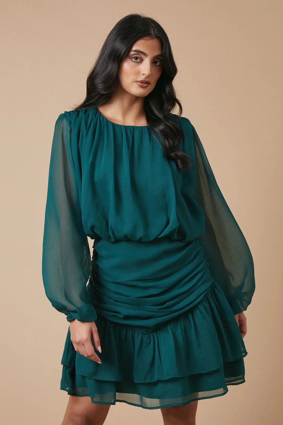 • Chiffon Floral Blouson Sleeve Mini Dress