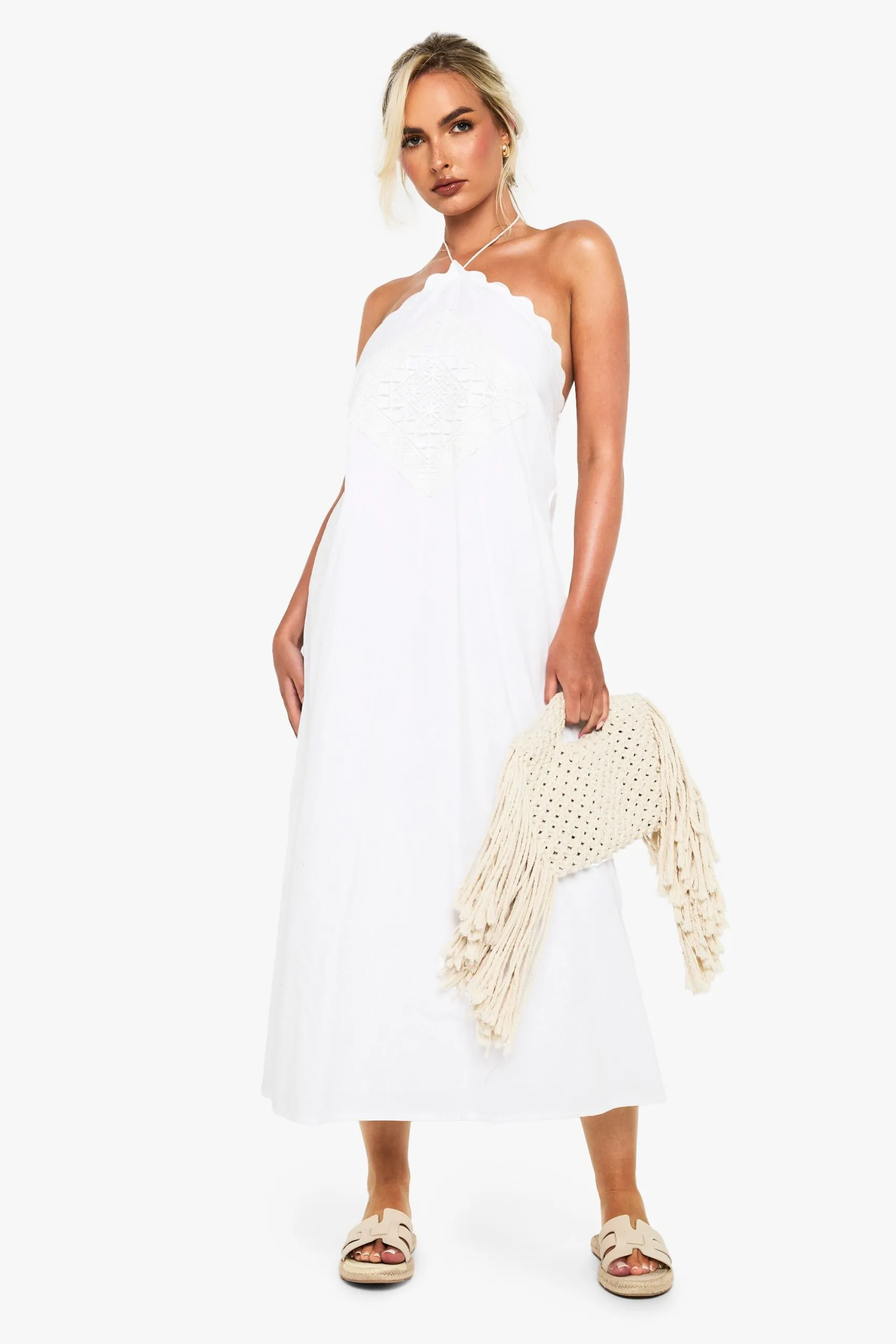 Sale!Cotton Crotchet Trim Halterneck Midaxi Dress
