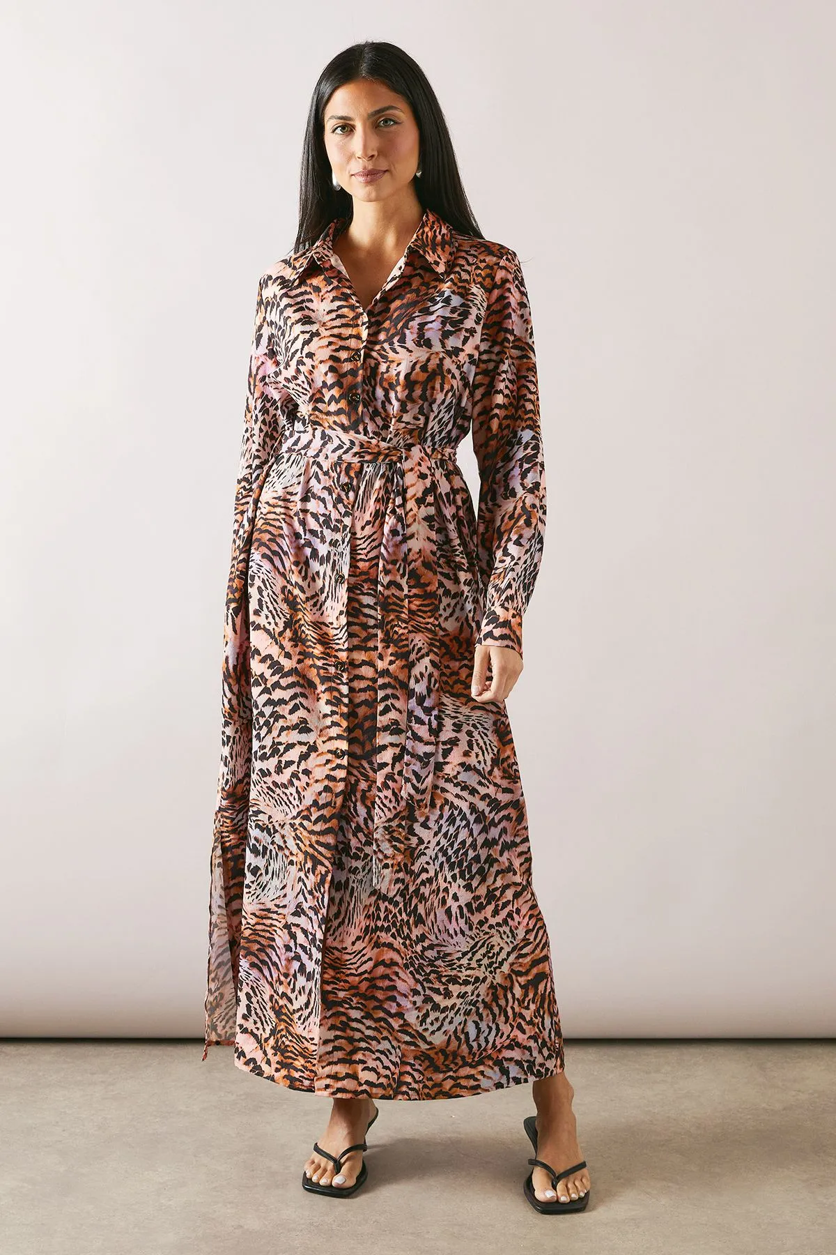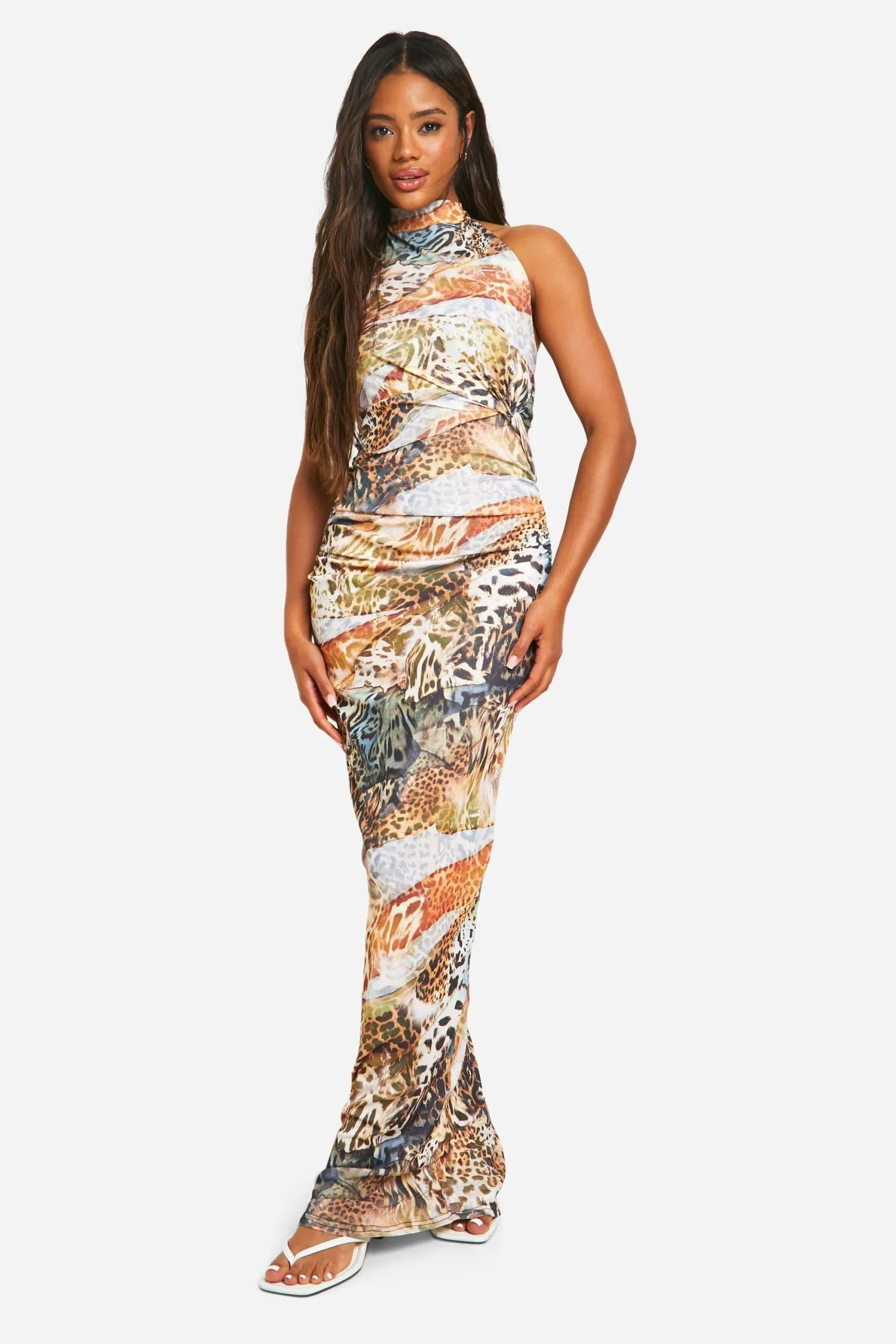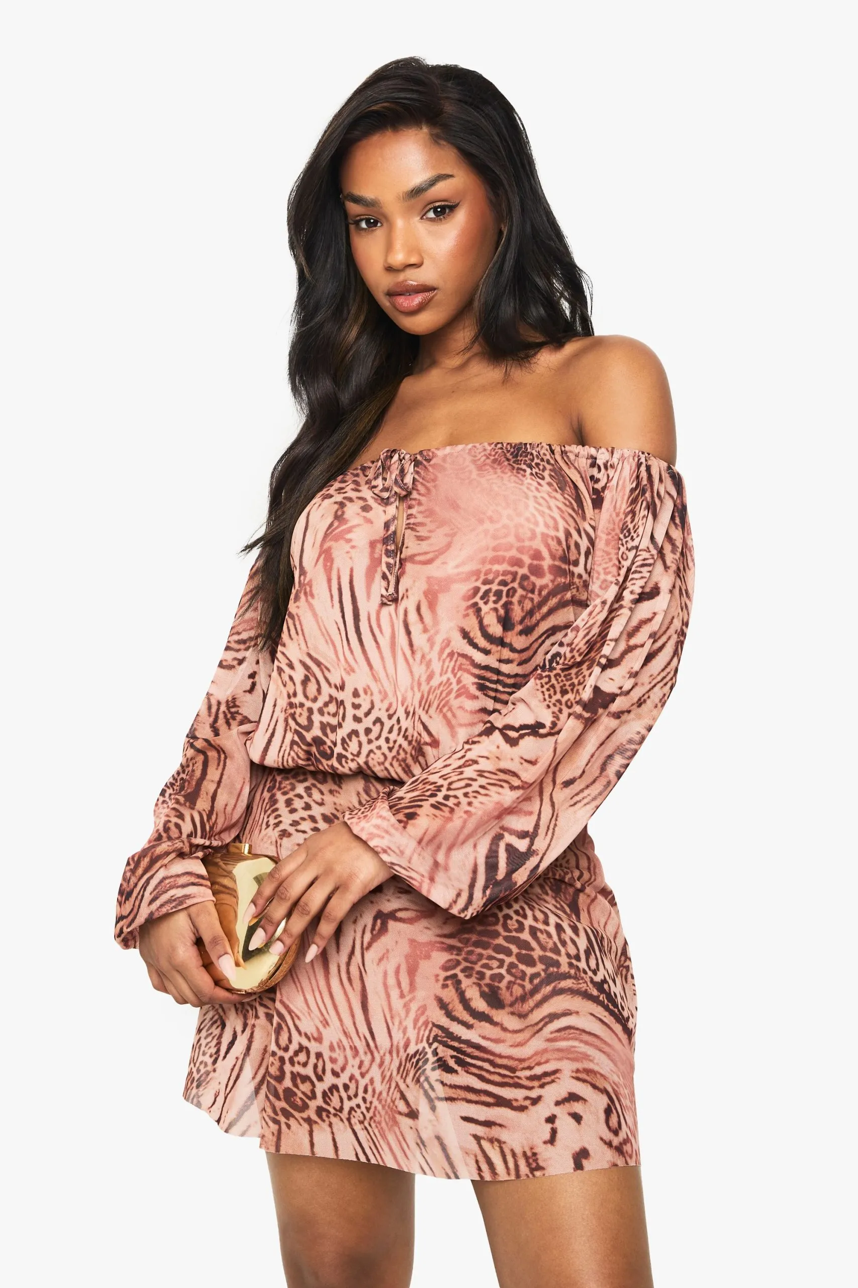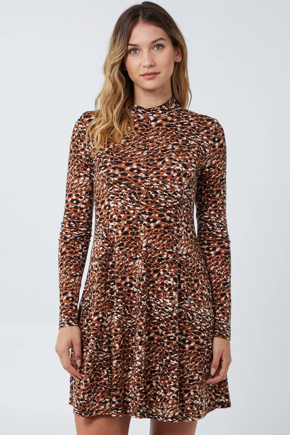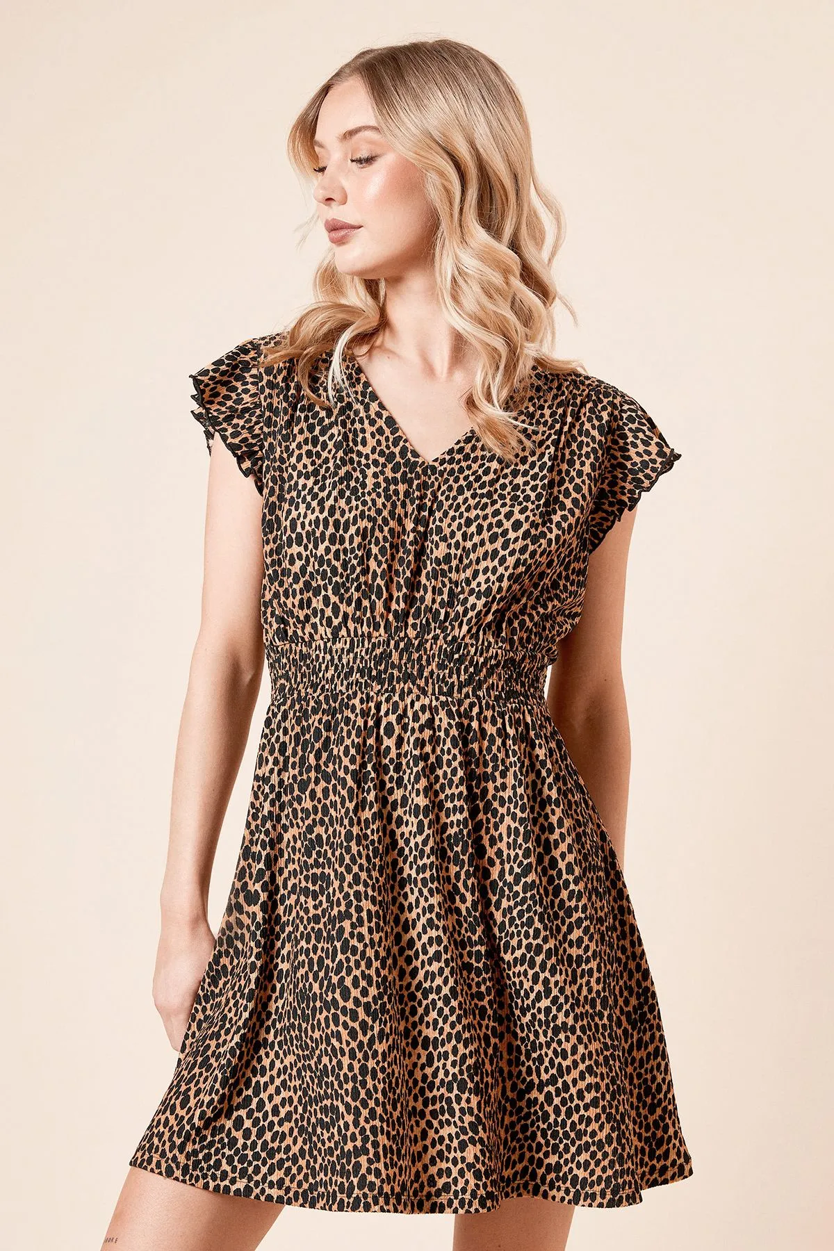 • Animal Flutter Sleeve V Neck Jersey Mini Dress