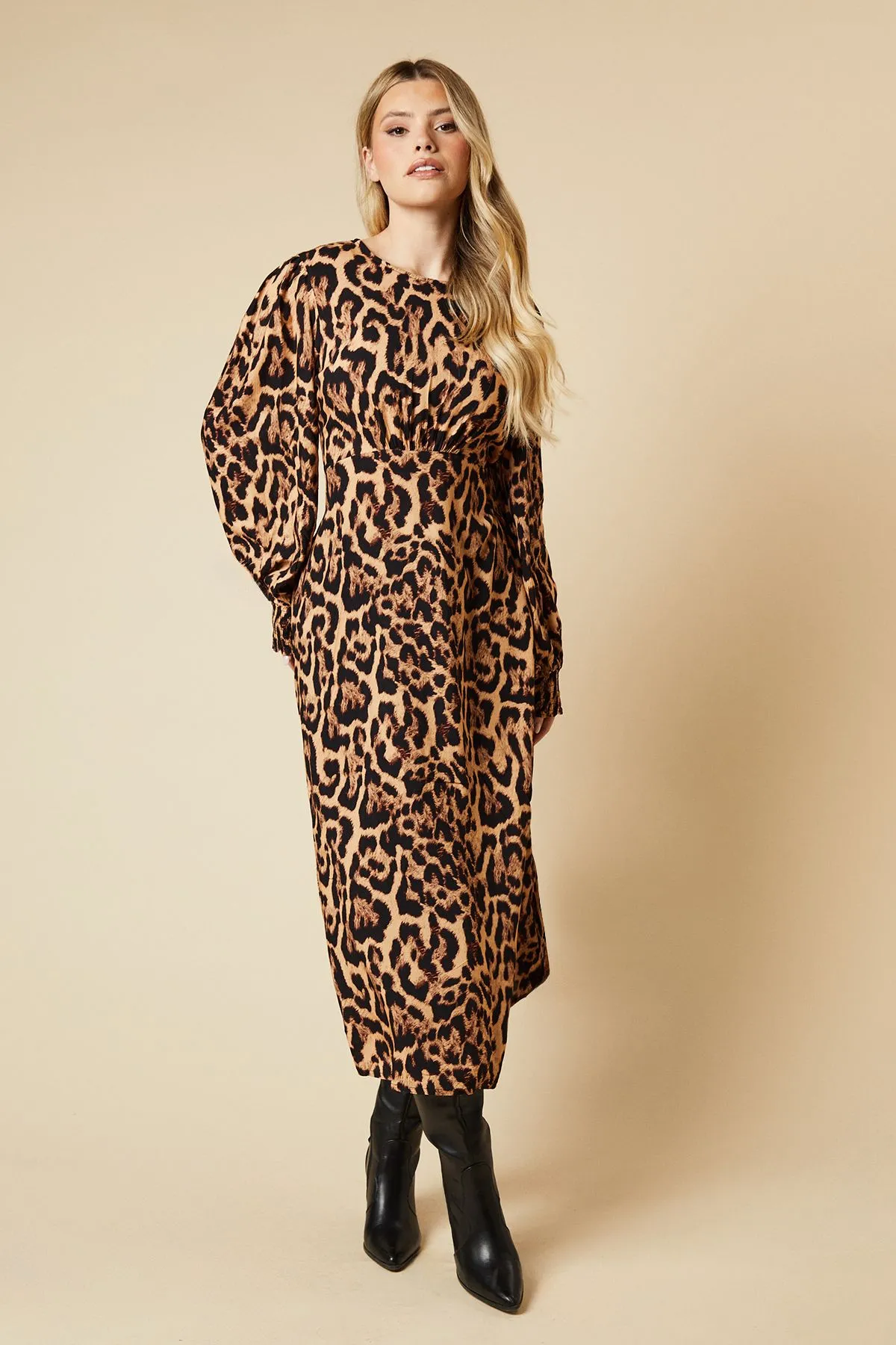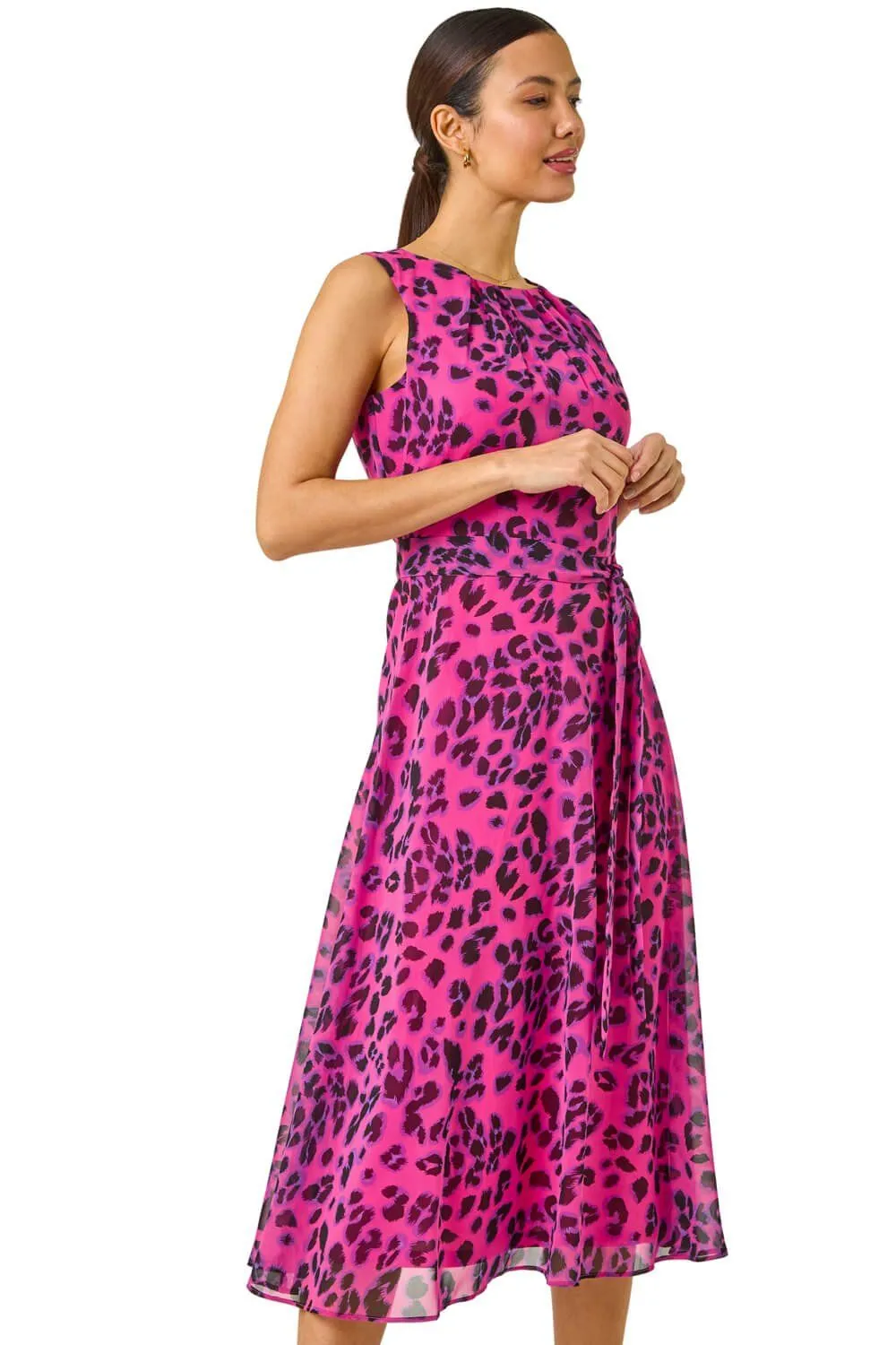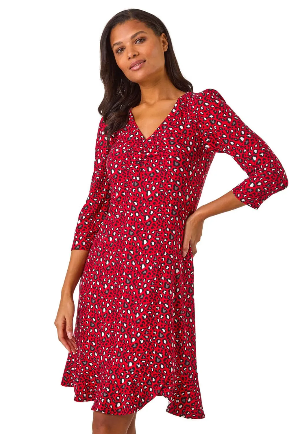 Sale!Animal Print V-Neck Ruched Stretch Dress