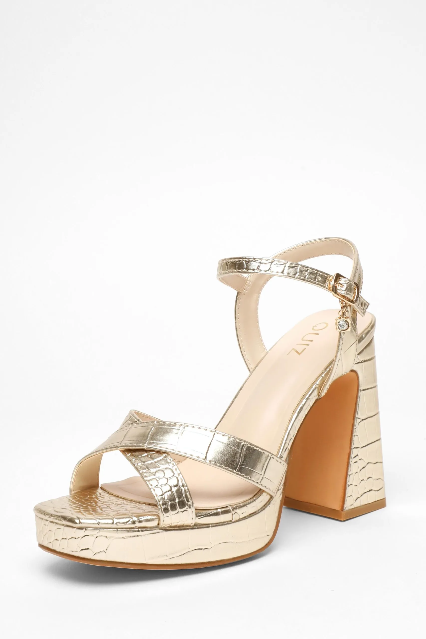Sale!Crocodile Cross Strap Platform Heeled Sandal