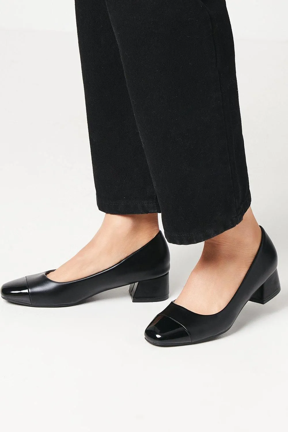 Sale!Delilah Toecap Detail Low Block Heel Court Shoes