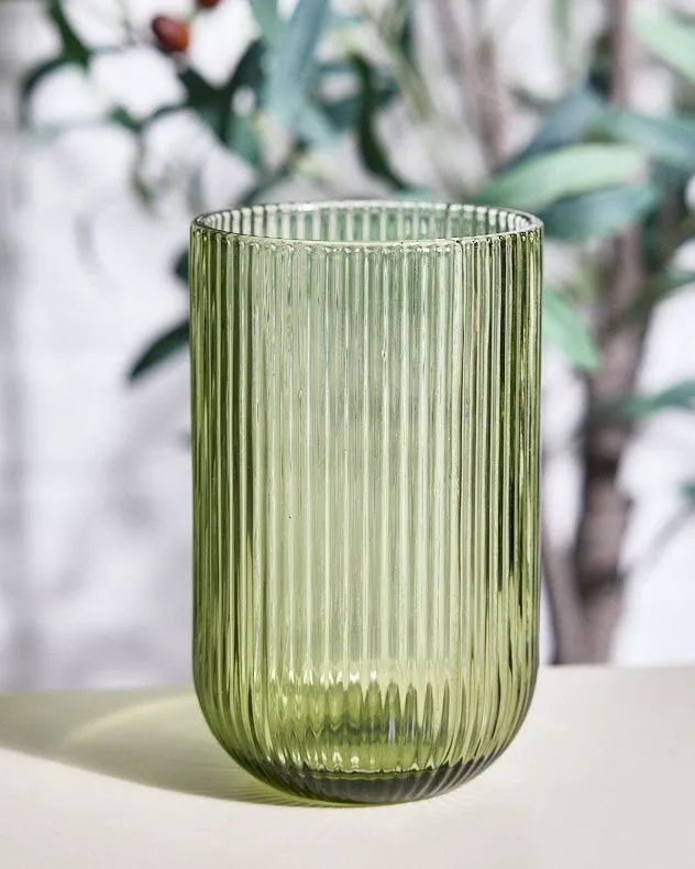 Sale!Set of 2 Vintage Luxury Green Ribbed Highball Drinking Glass Tumblers Gift Idea 420ml