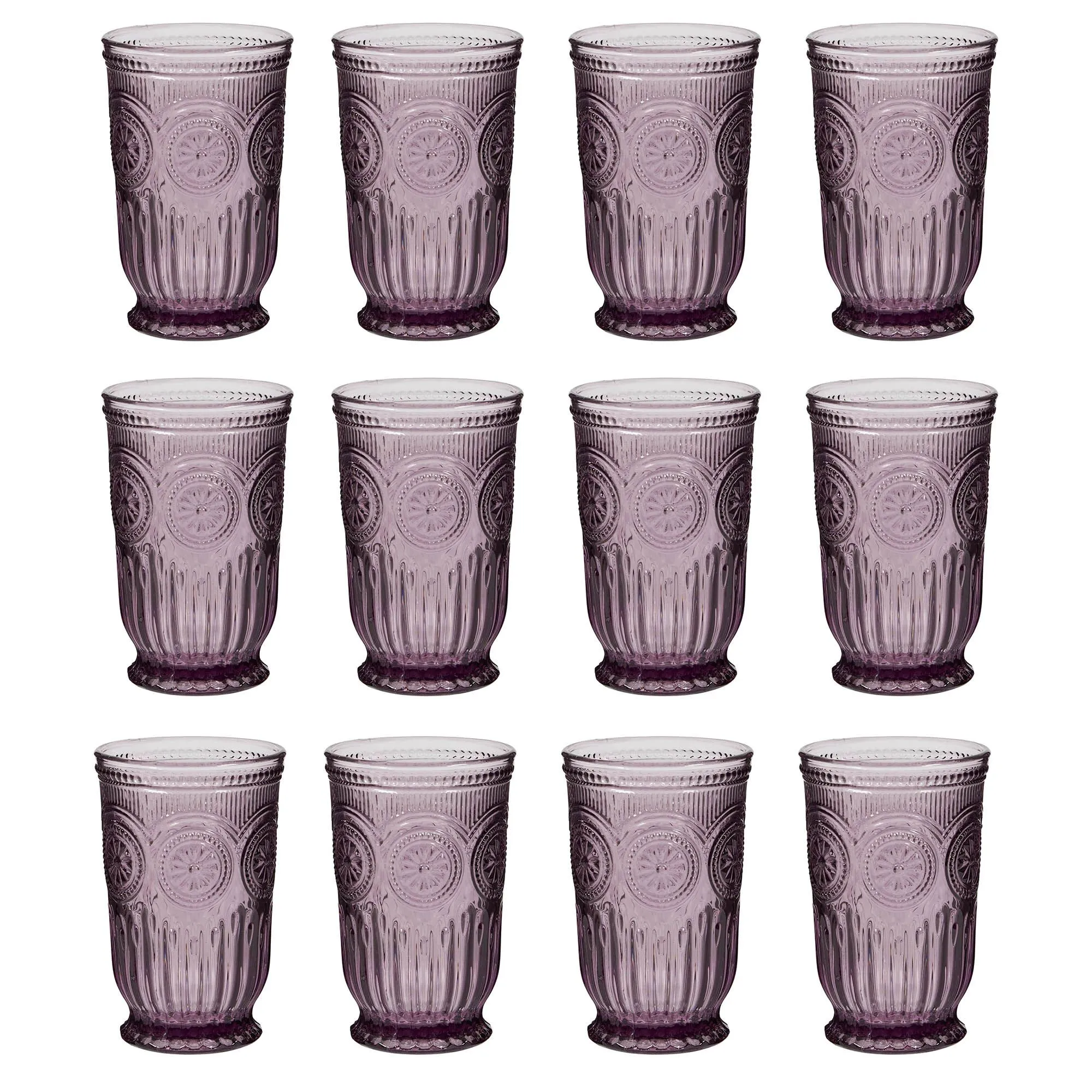 Sale!Set of 12 Luxury Embossed Purple Tall Drinking Glass Tumblers Gift Idea 330ml