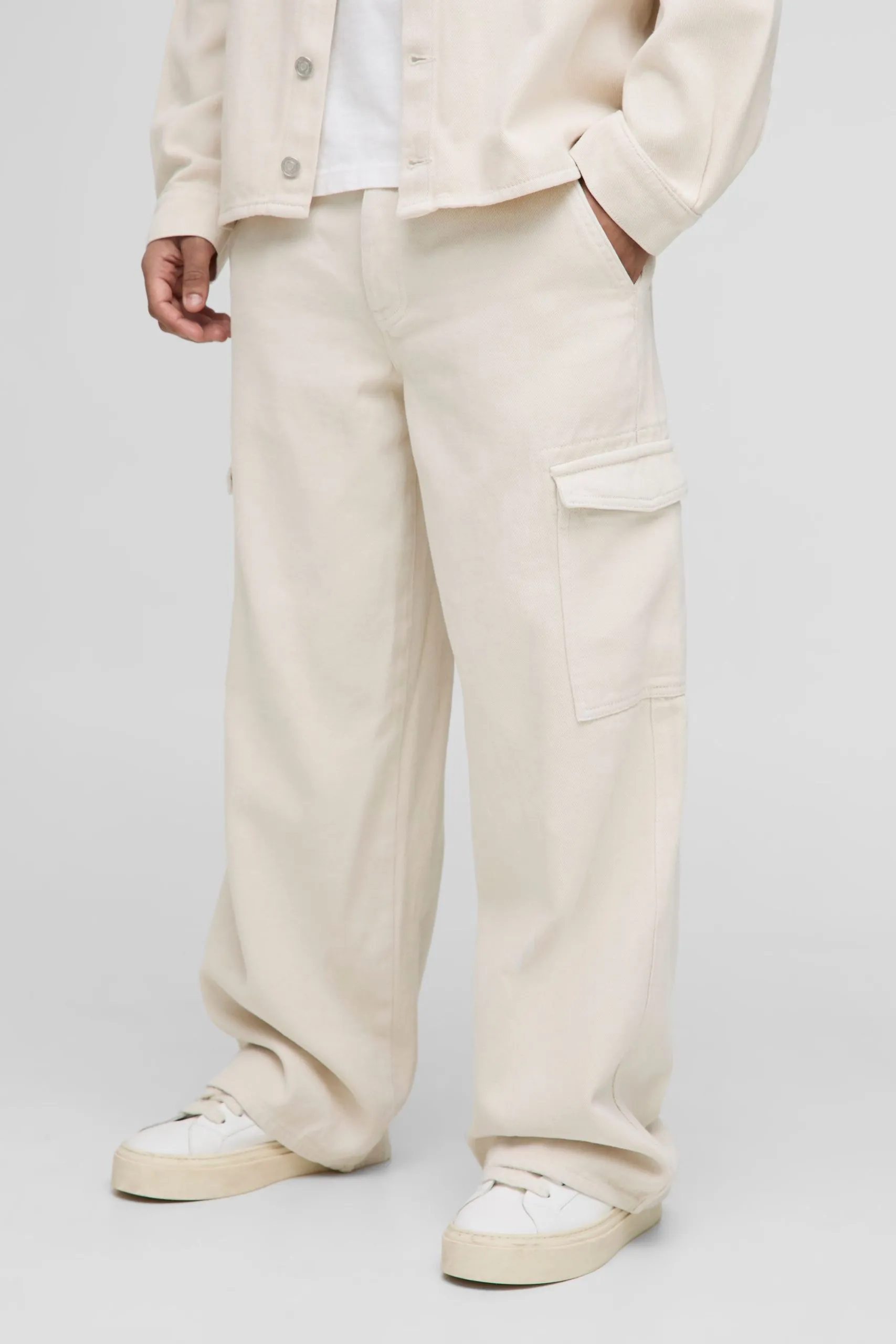 Baggy Fit Stone Washed Cargo Jeans
