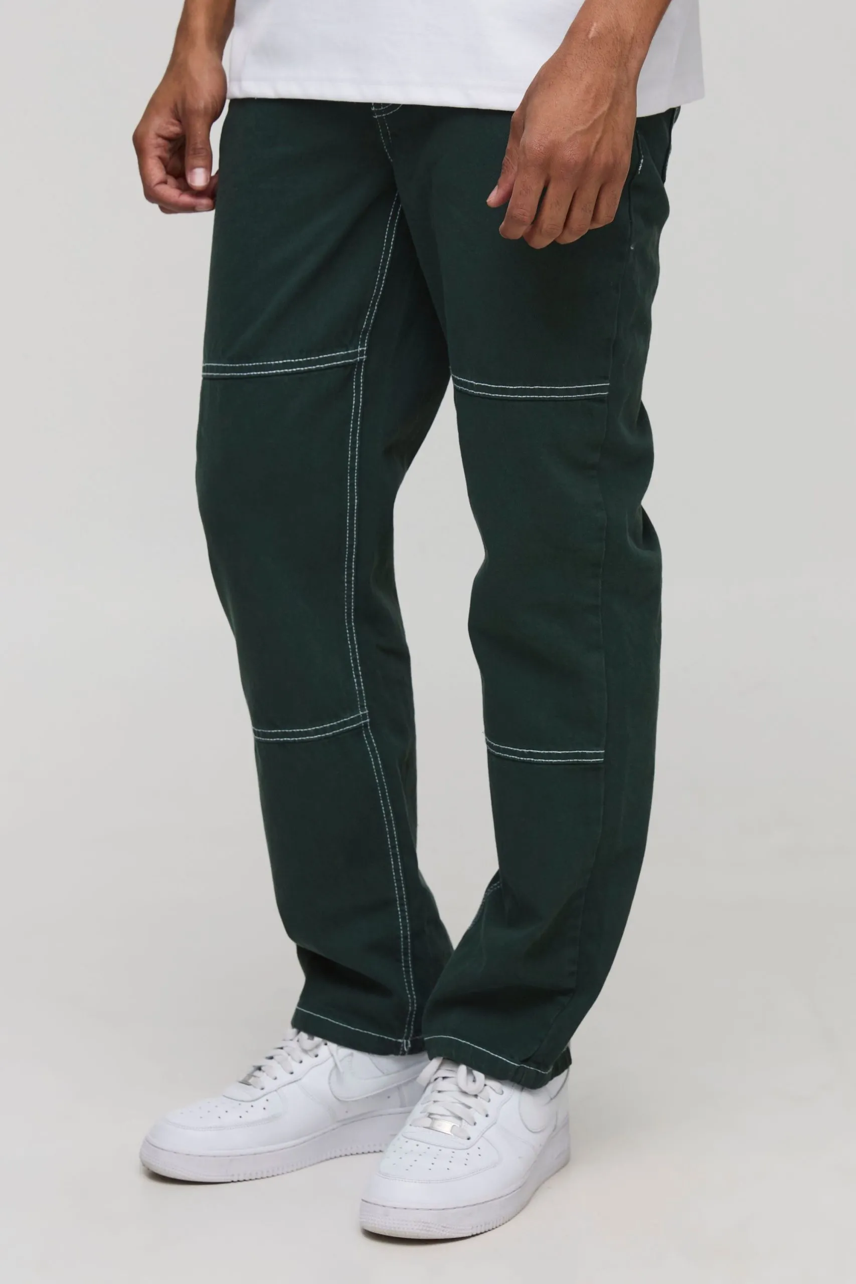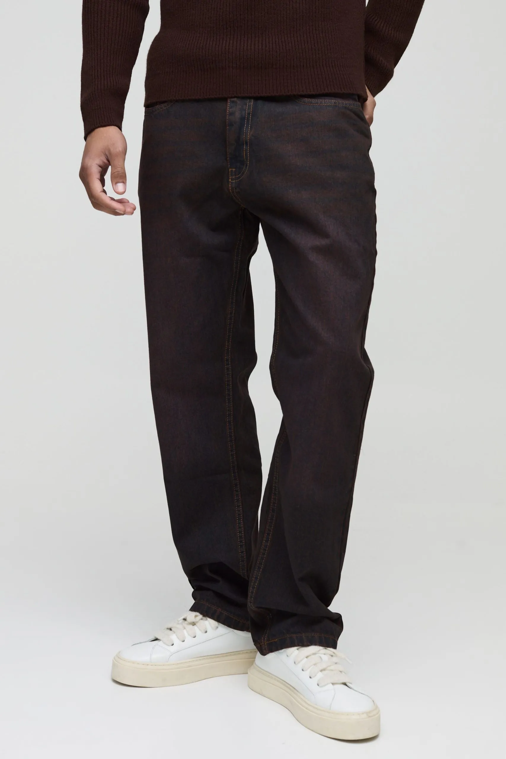 Sale!Straight Leg Contrast Stitch Denim Jeans