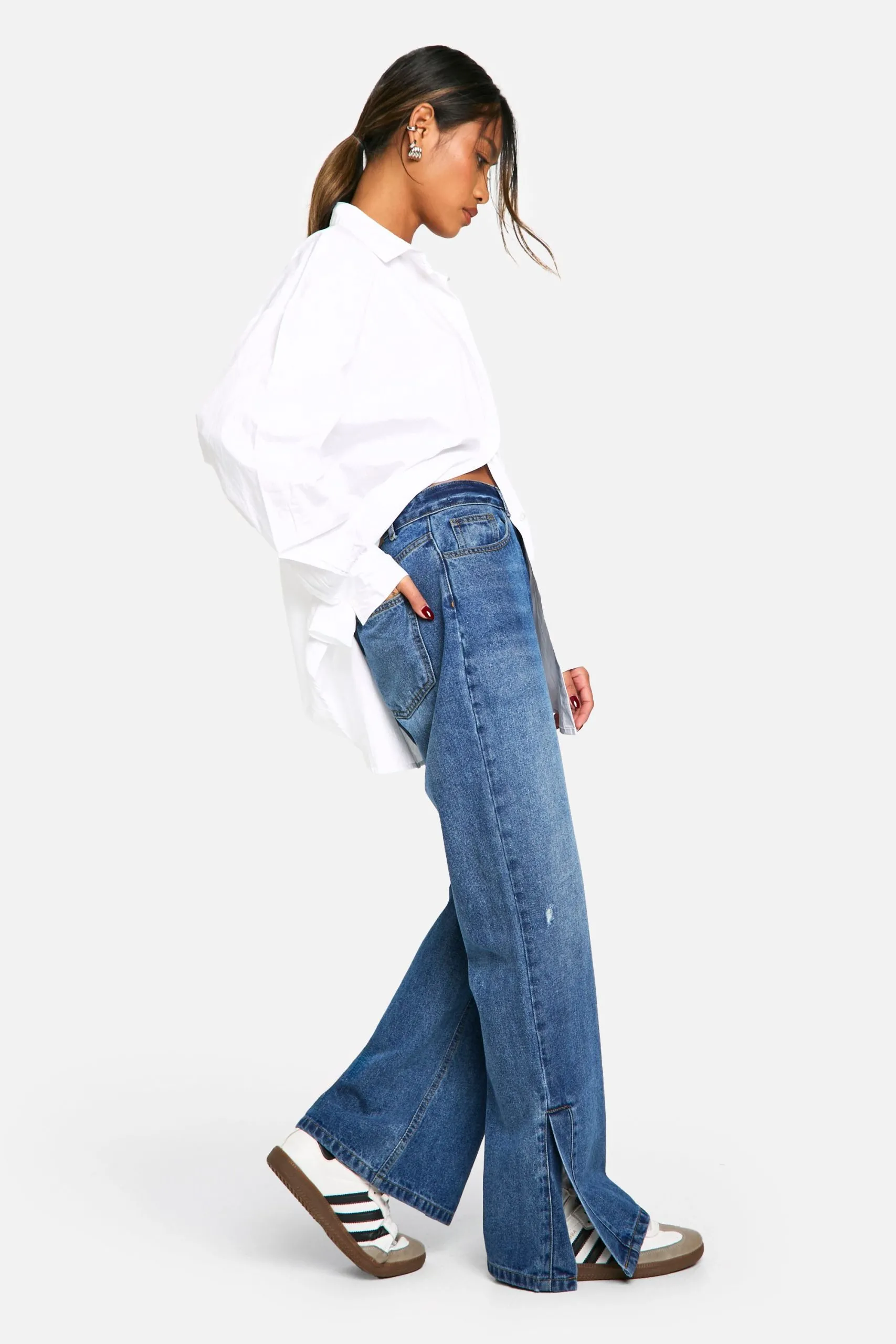 Sale!Straight Leg Distressed Zip Jeans- Blue Jeans