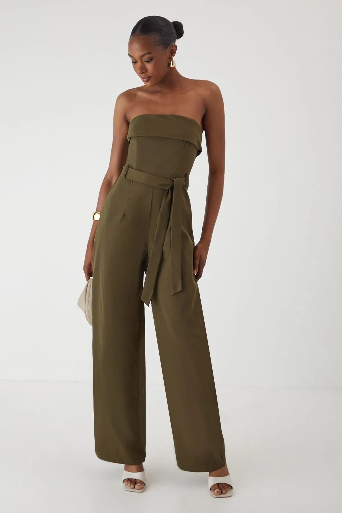 • Backless Wide-Leg Jumpsuit with Spaghetti Straps