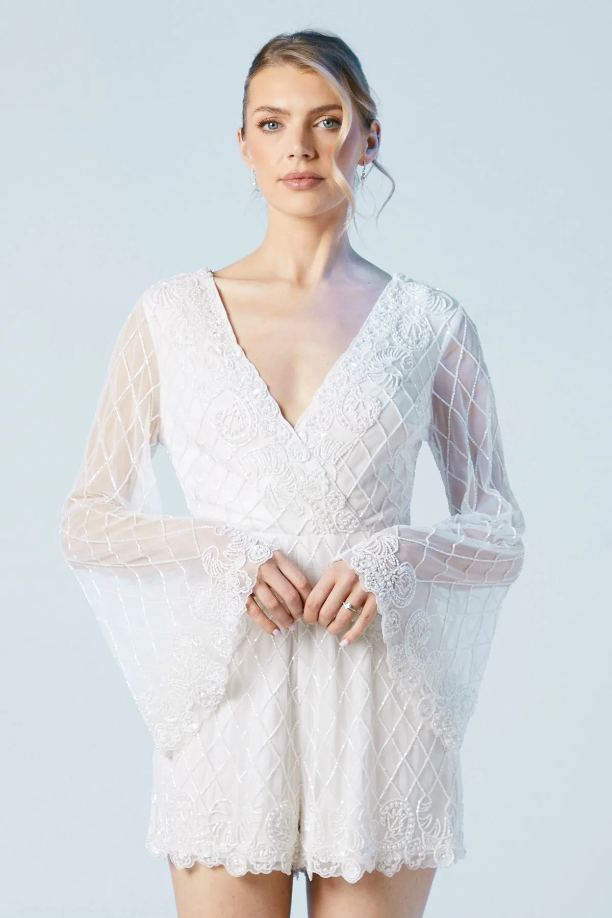Sale!Tie Back Scallop Edge Embellished Bridal Playsuit