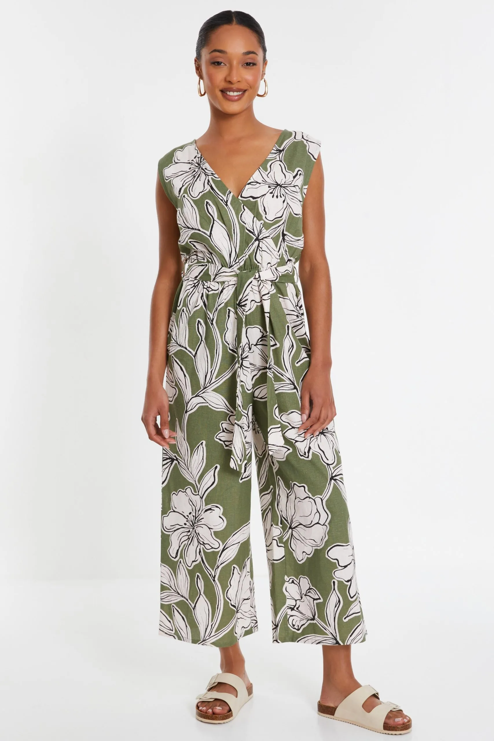 Sale!Green Abstract Belted Bardot Viscose Playsuit