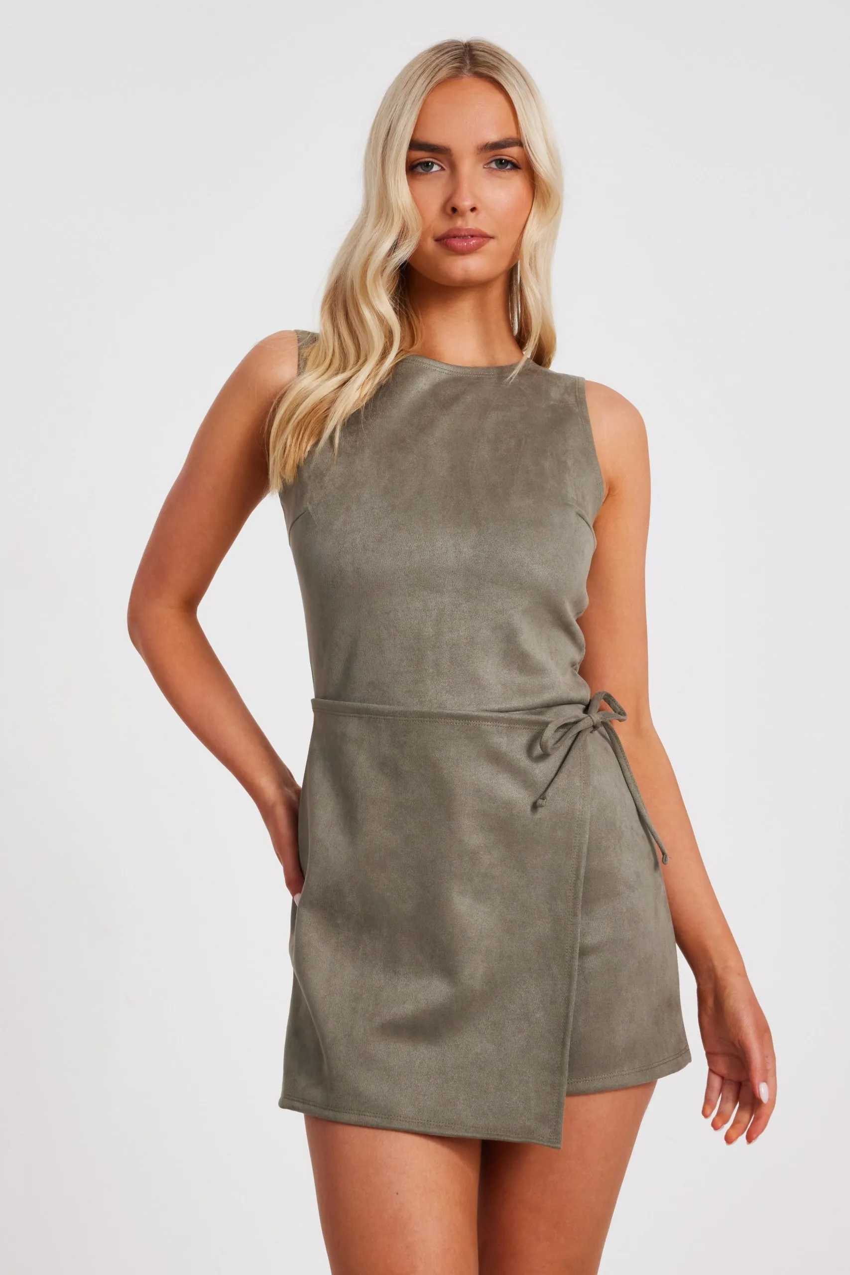 Sale!Khaki Faux Suede Playsuit