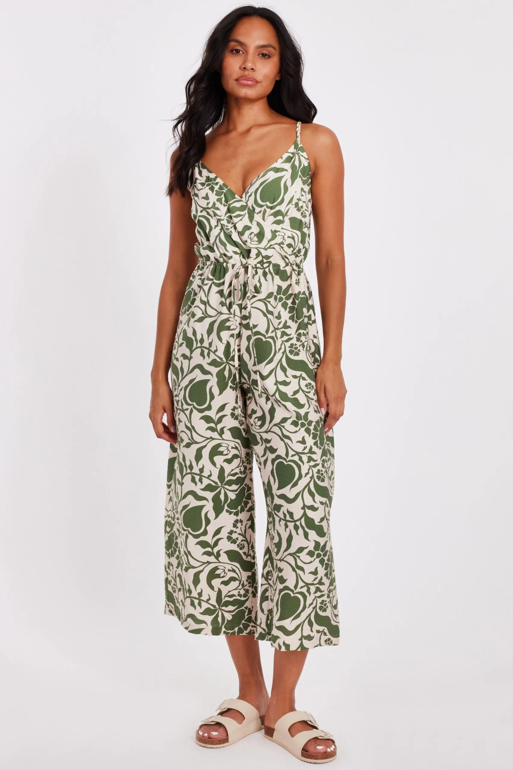 Sale!Khaki Tropical Print Jumpsuit