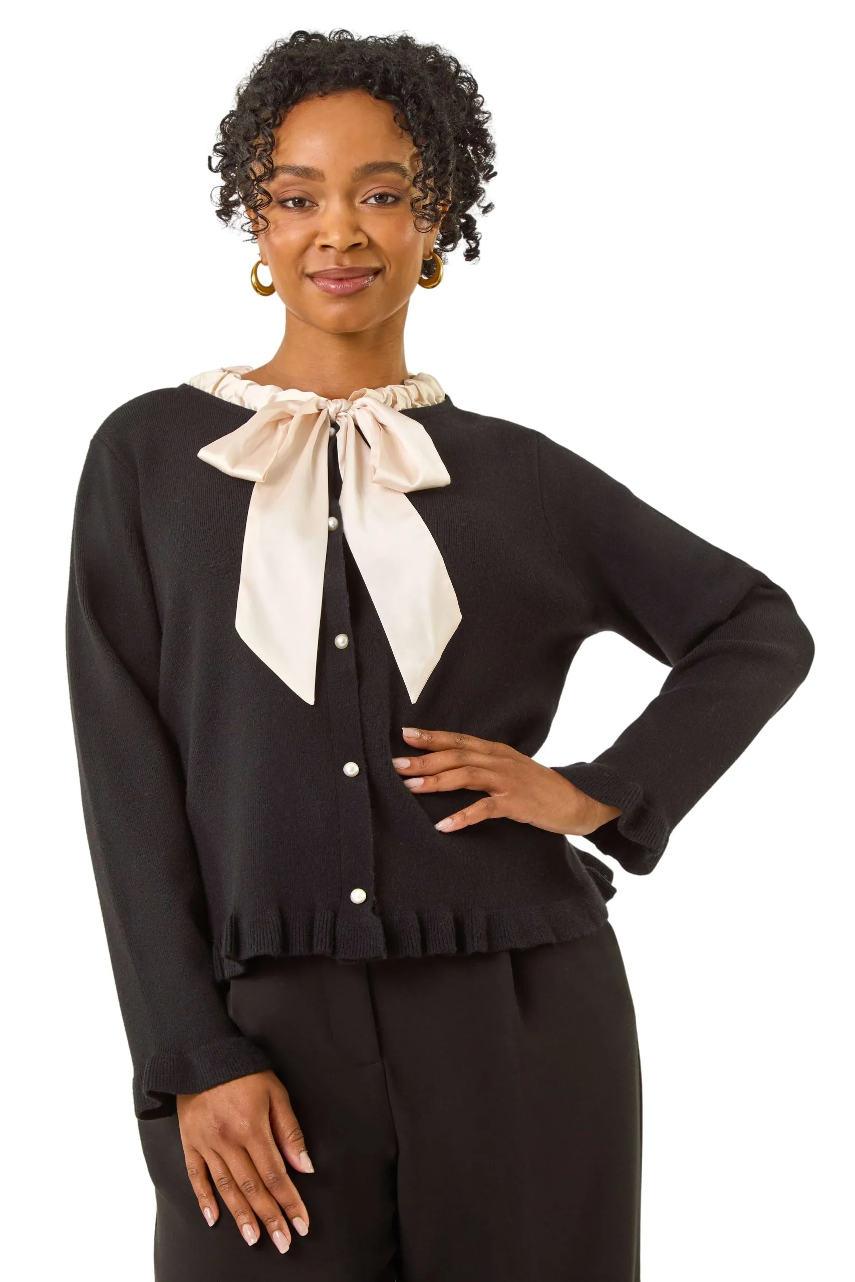 Sale!Petite Tie Neck Frill Hem Cardigan