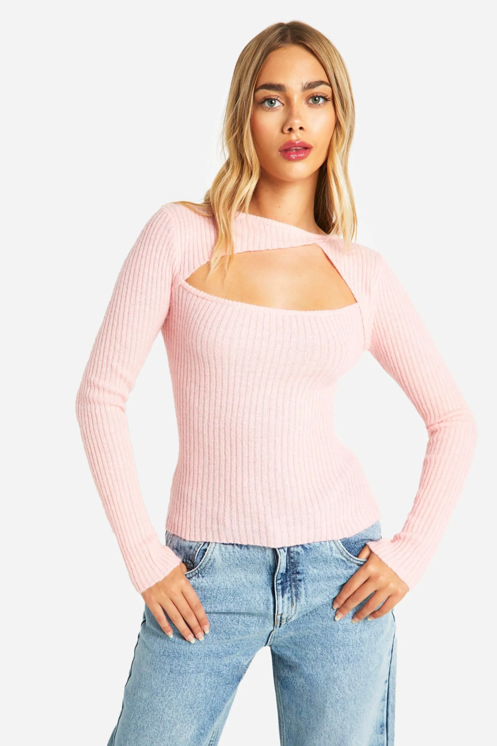 Sale!Rib Knitted Long Sleeve Top