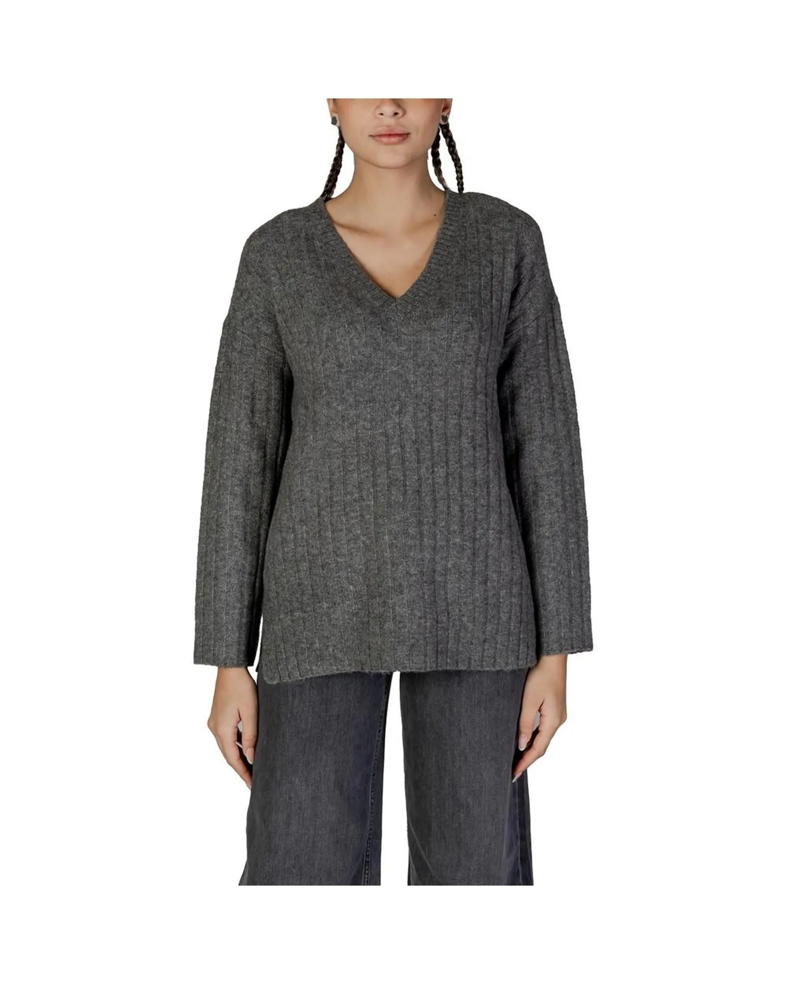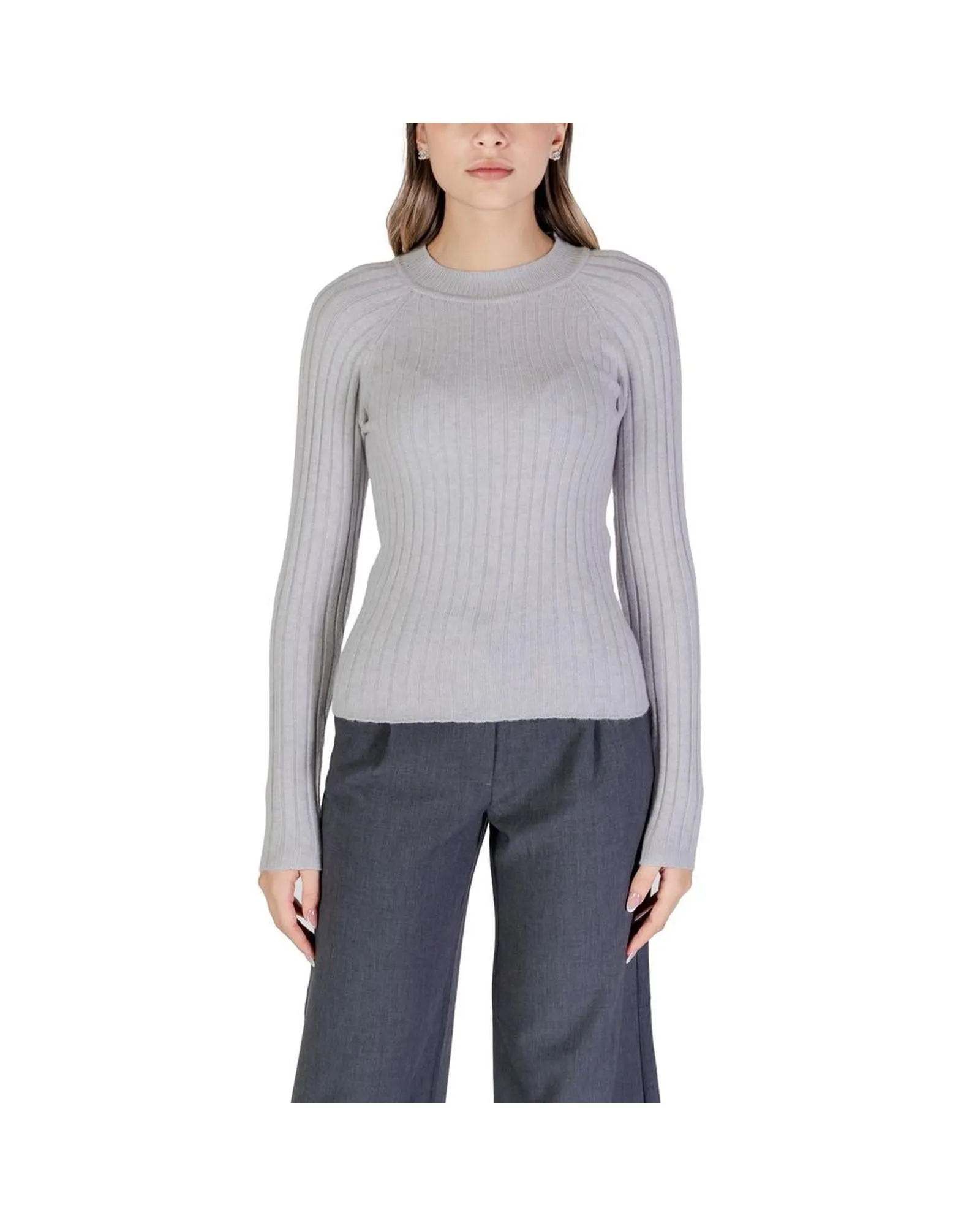 Sale!Ribbed Knit Sweater Long Sleeve- Grey Knitwear