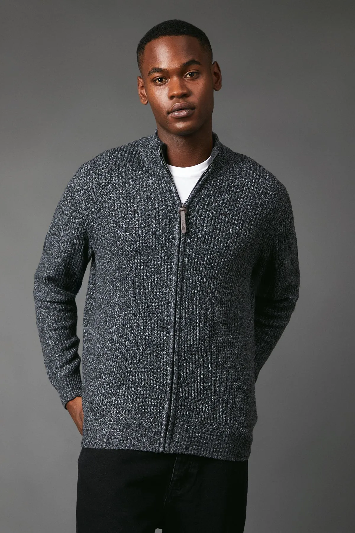 Sale!Twisted Yarn Zip Through Knitted Jumper