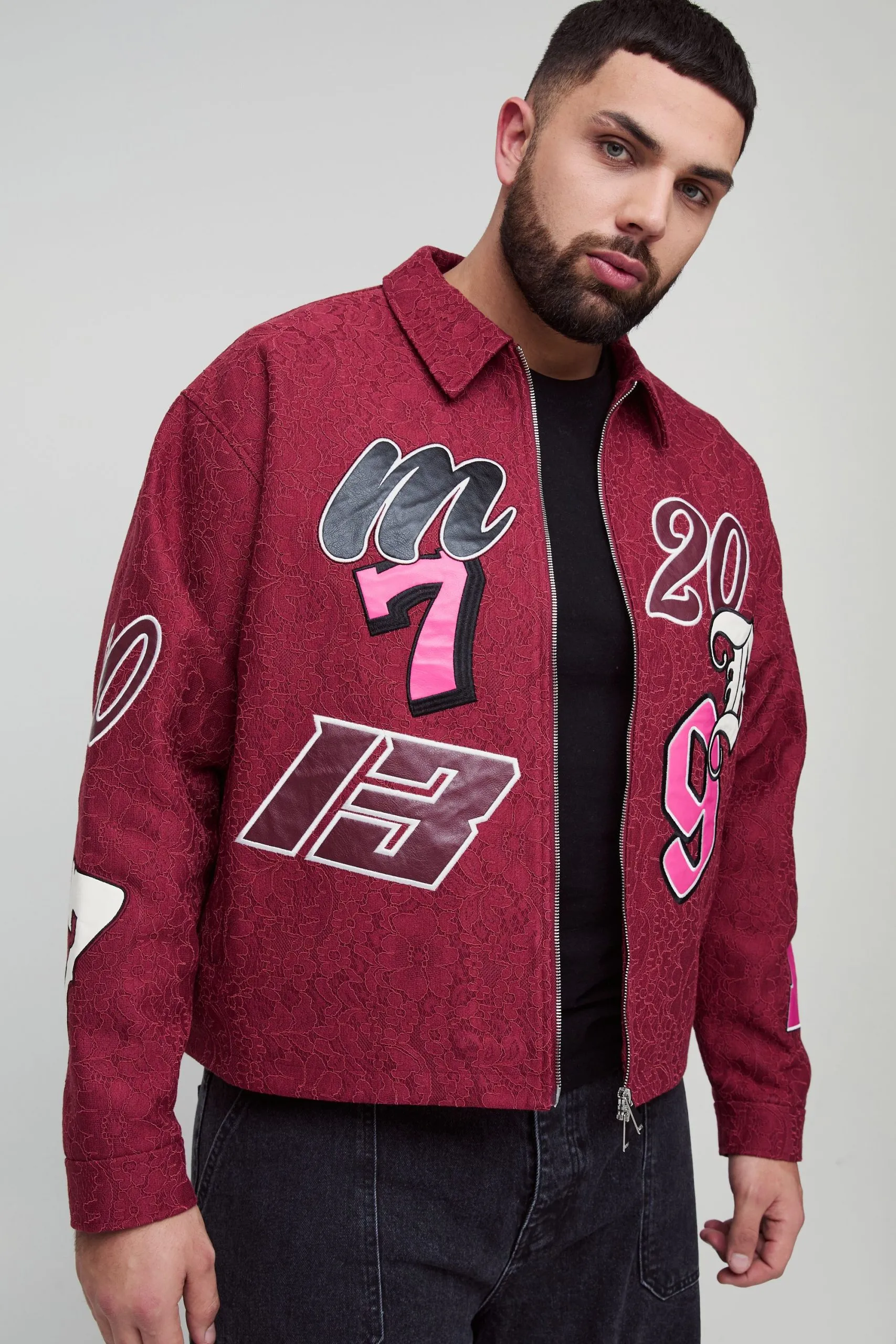 Sale!Plus Boxy Oversized Lace All Over Applique Harrington Jacket