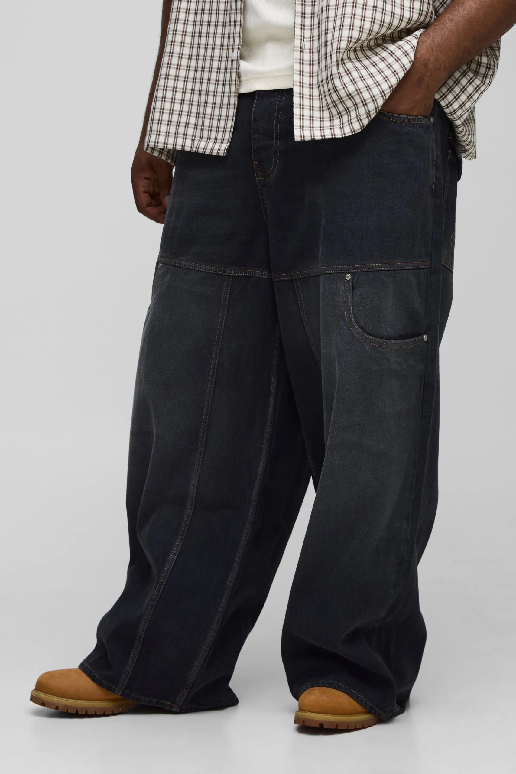 Sale!Plus Baggy fit Washed Carpenter Panelled Jeans