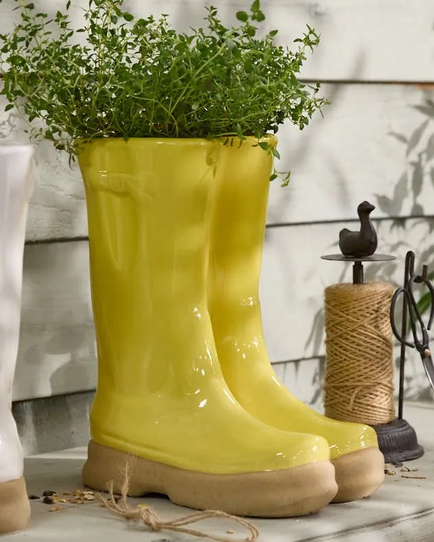 Large Yellow Wellington Boot Indoor Outdoor Garden Planter Flower Pot (H)16cm, (L)24cm