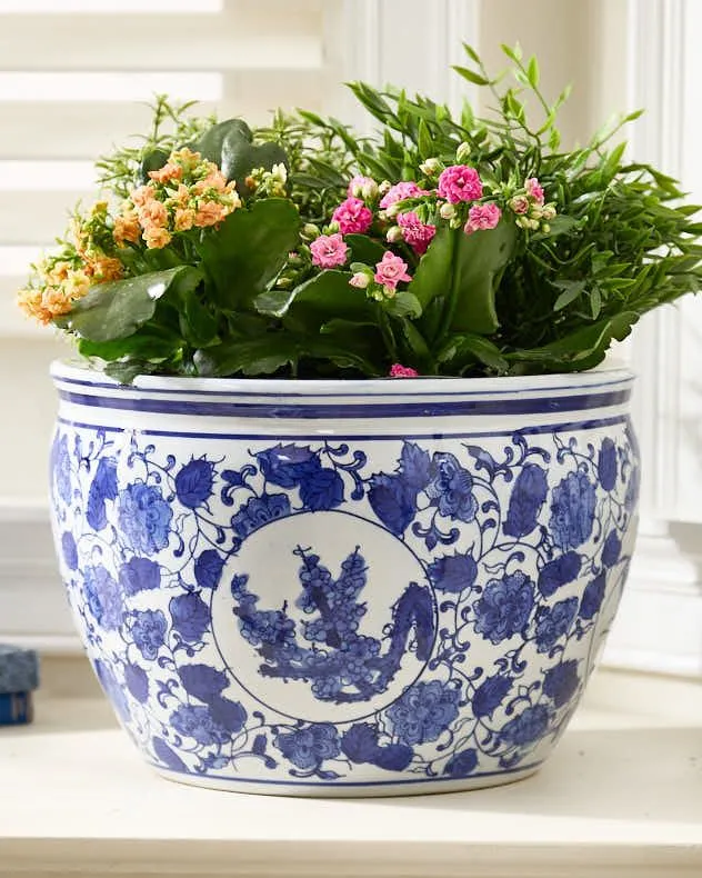Luxury Victorian Jardinière Large Blue & White Floral Pot Planter (Dia) 30cm, (H) 21.5cm