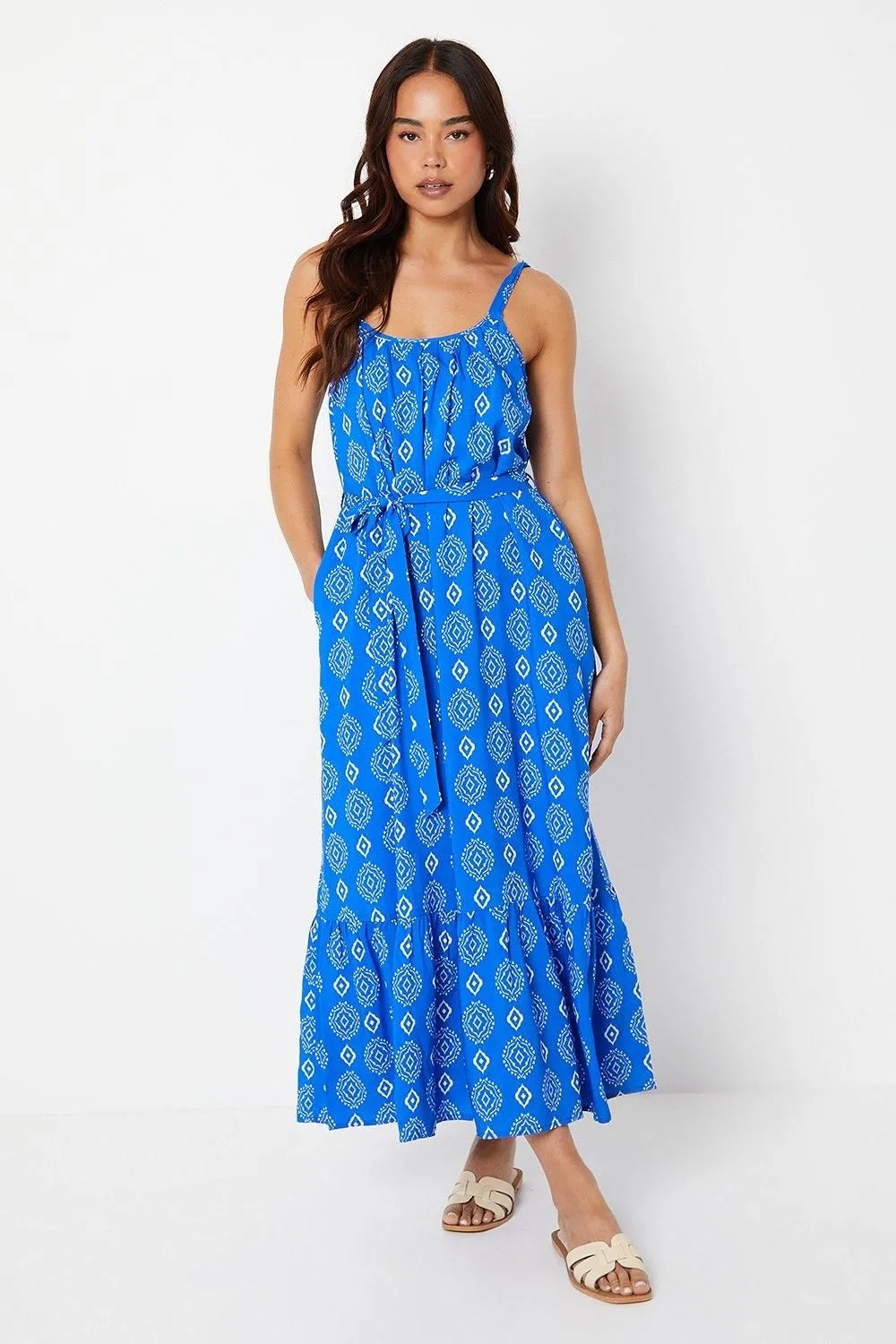 Sale!Petite Blue Tile Tiered Pocket Midi Dress