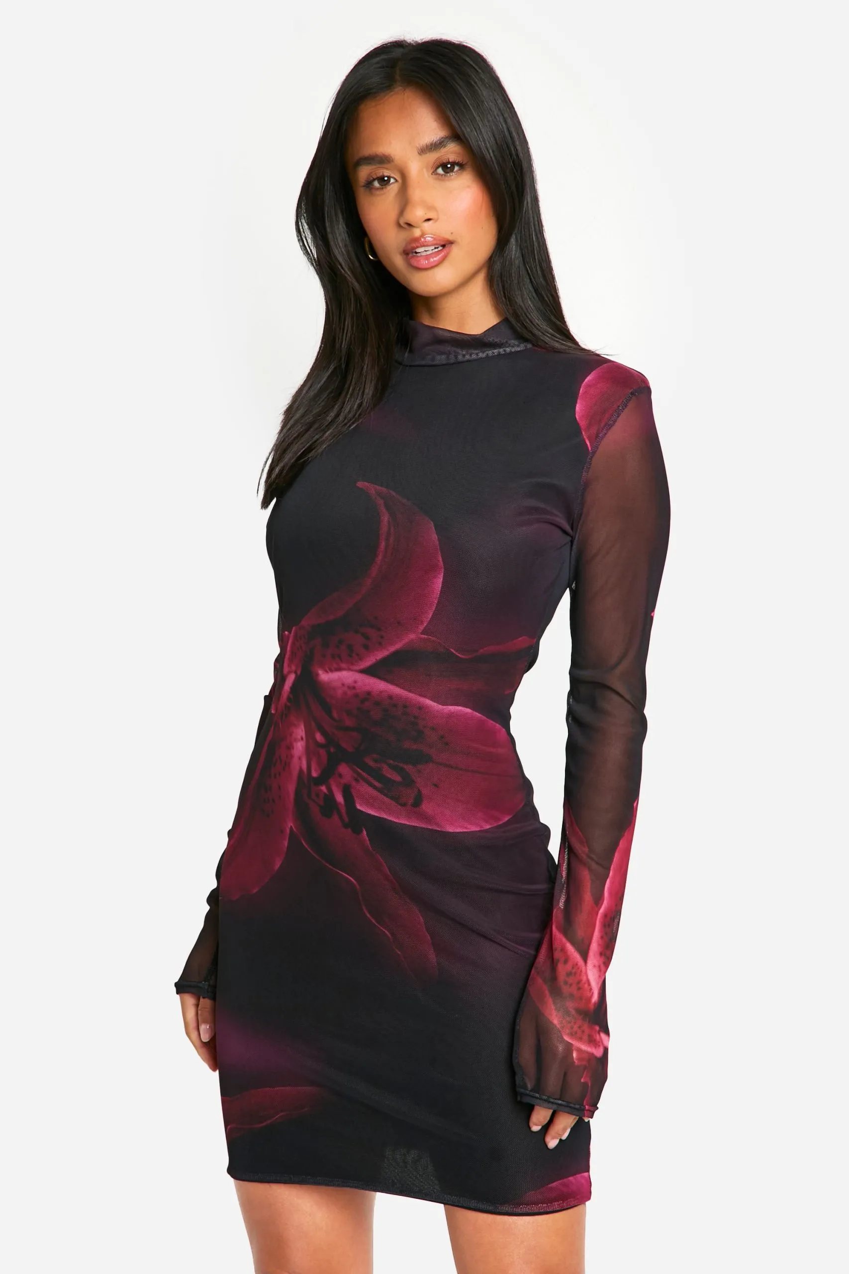 Sale!Petite Bold Floral Asymmetric Cowl Drape Maxi Dress