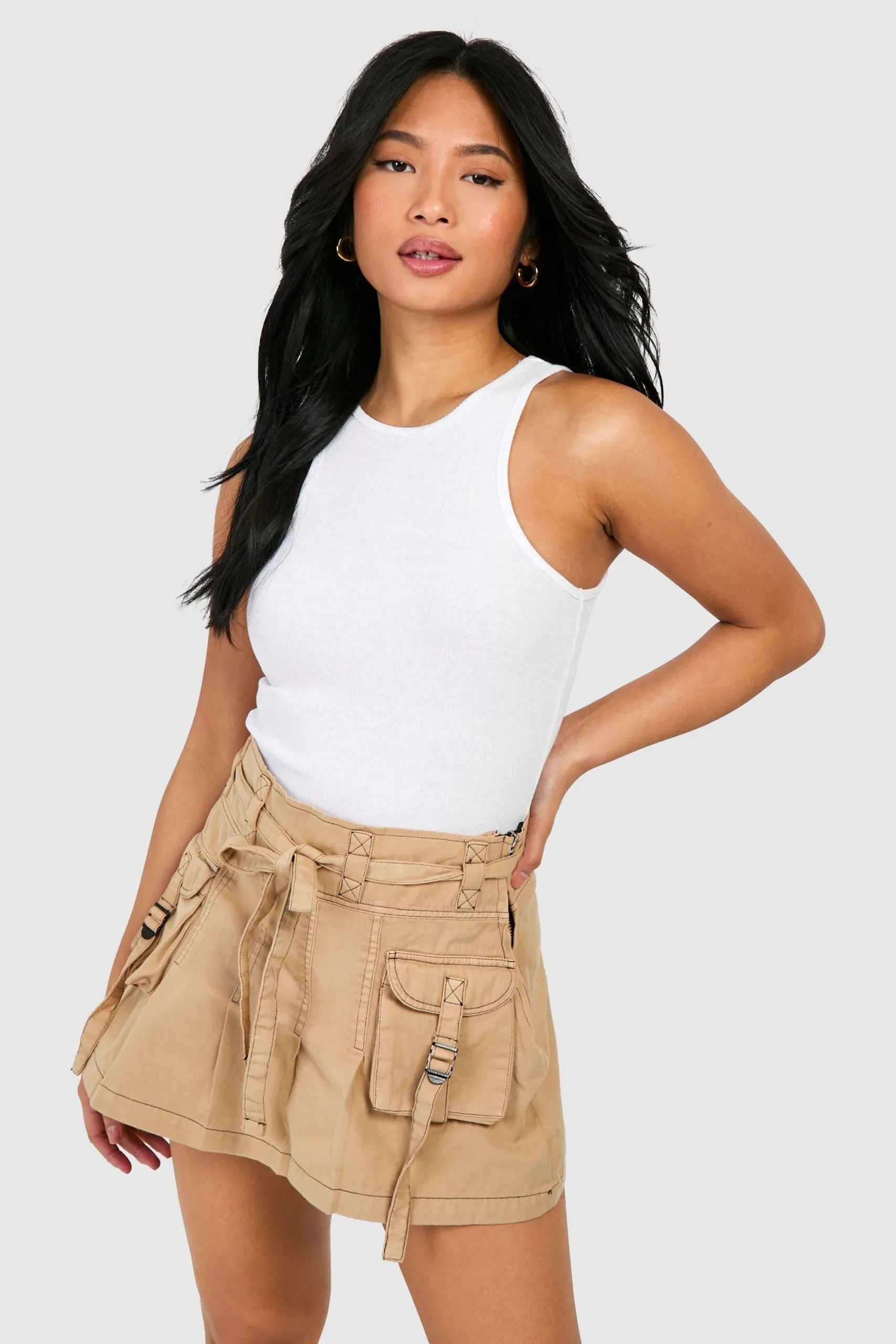 Sale!Petite Cargo Tie Waist Washed Mini Skirt