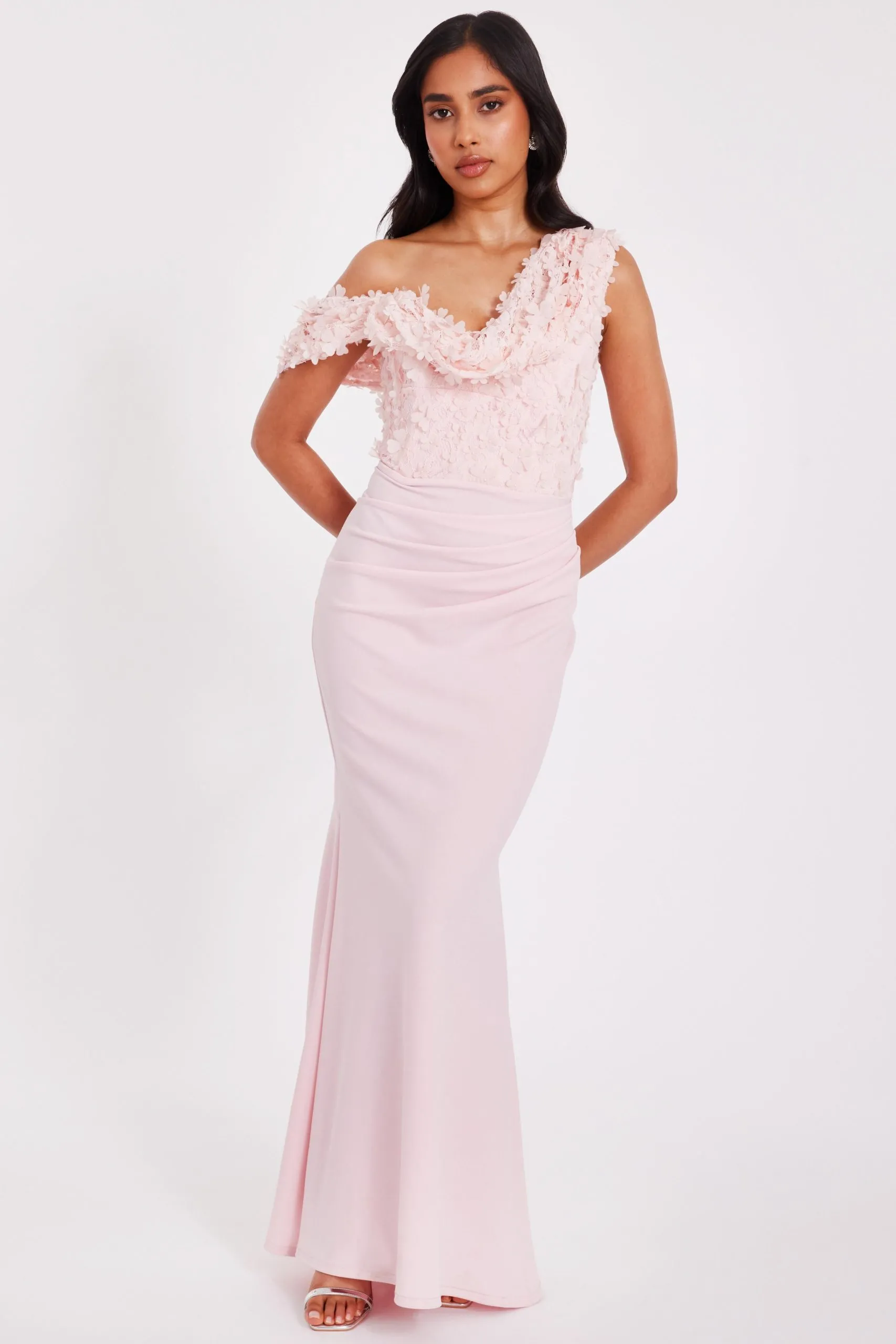 • Pale Pink Petite Floral Drop Sleeve Maxi Dress