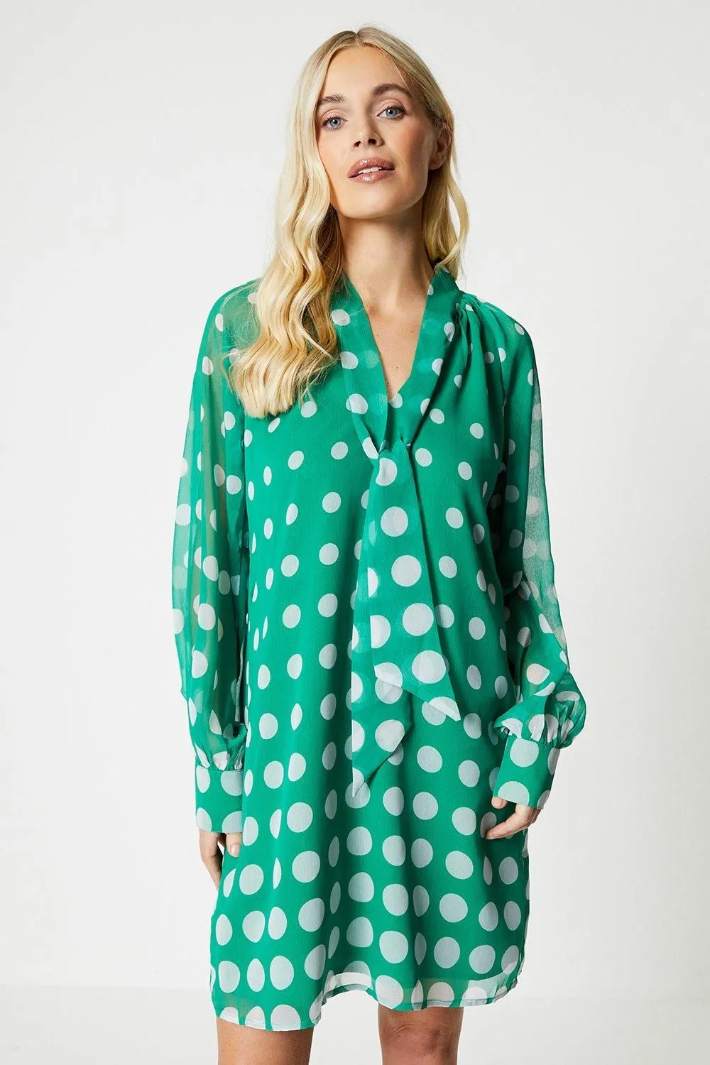 • Petite Spot Chiffon Tie Neck Shift Dress