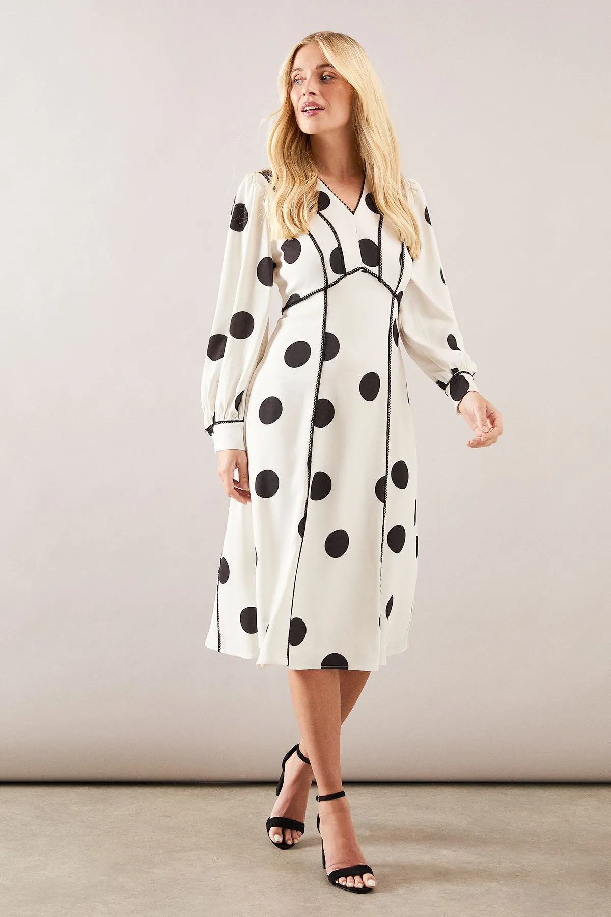 • Petite Spot Lace Insert Midi Dress