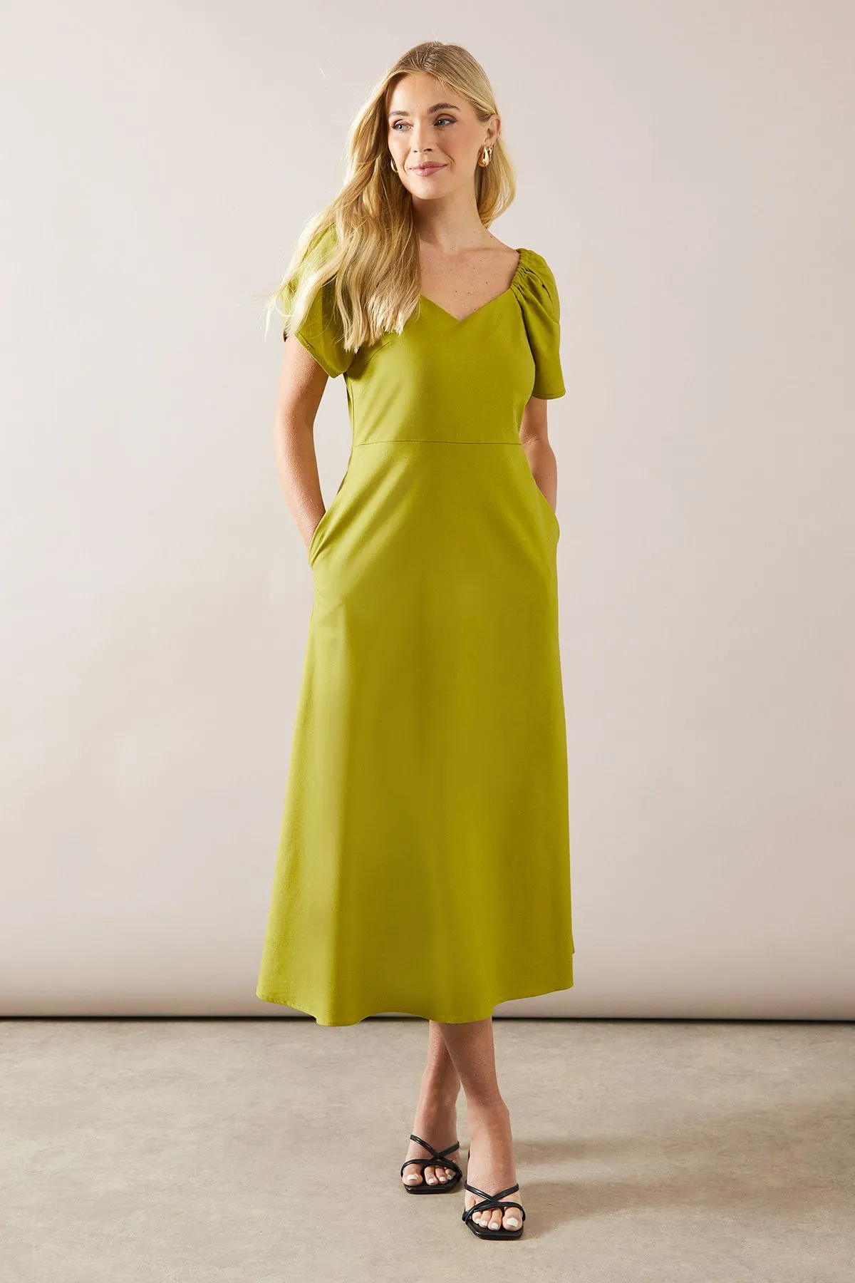 Petite Sweetheart Neck Tulip Sleeve Linen Dress