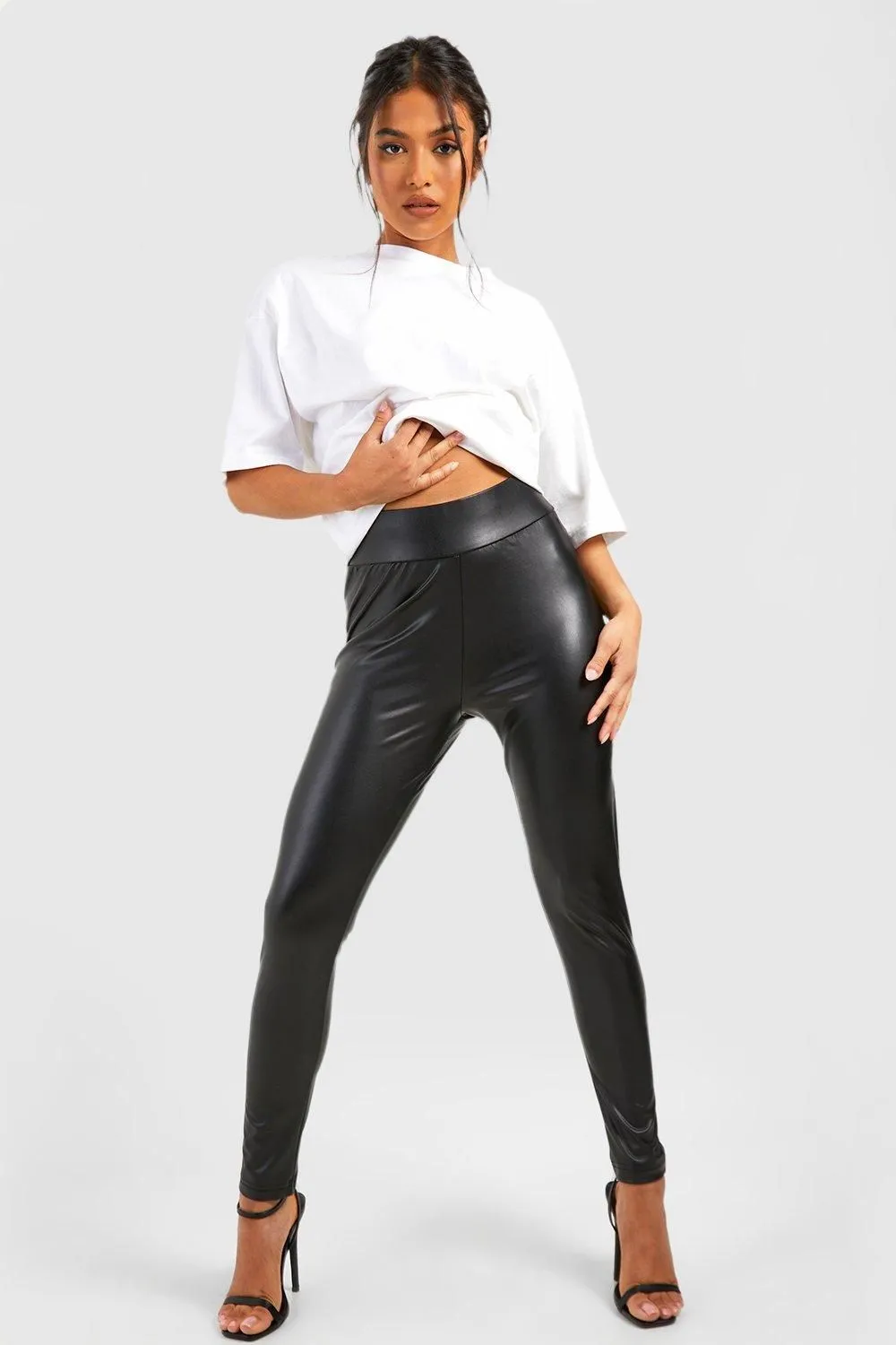 Petite Super Stretch Waist Shaping Leather Look Leggings