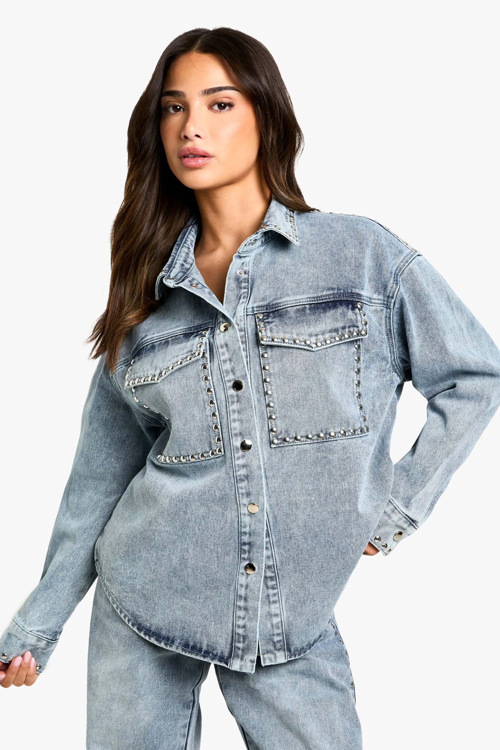 • Petite Stud Detail Denim Oversized Shirt  Dress