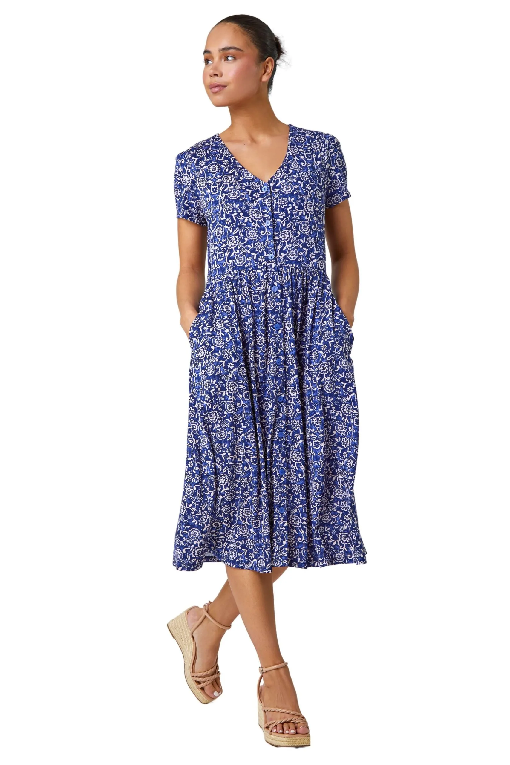 • Petite Sweetheart Neck Tulip Sleeve Linen Dress