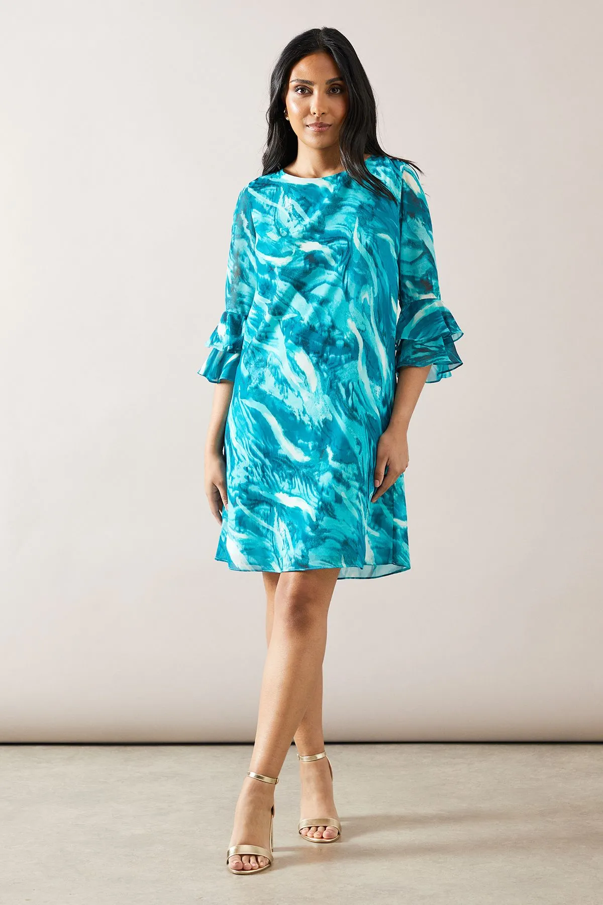• Petite Yellow Ditsy Shirred Cuff Midi Dress