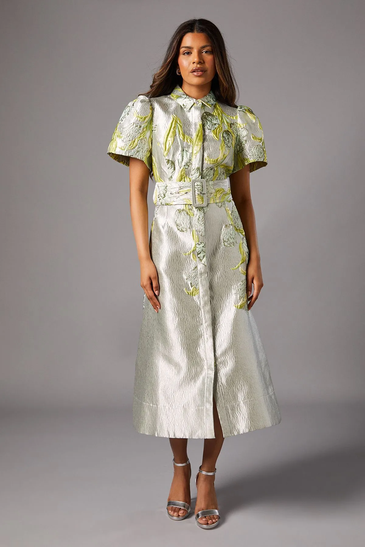 • Petite Belted Jacquard Shirt Dress
