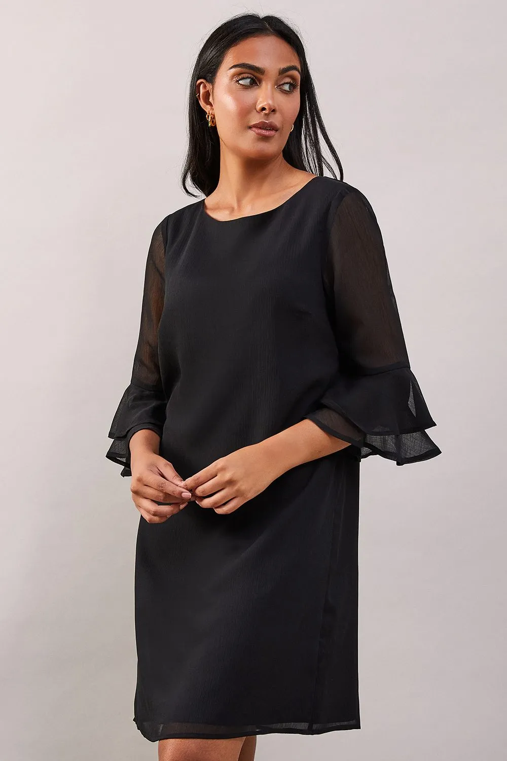 Petite Black Flute Sleeve Shift Dress