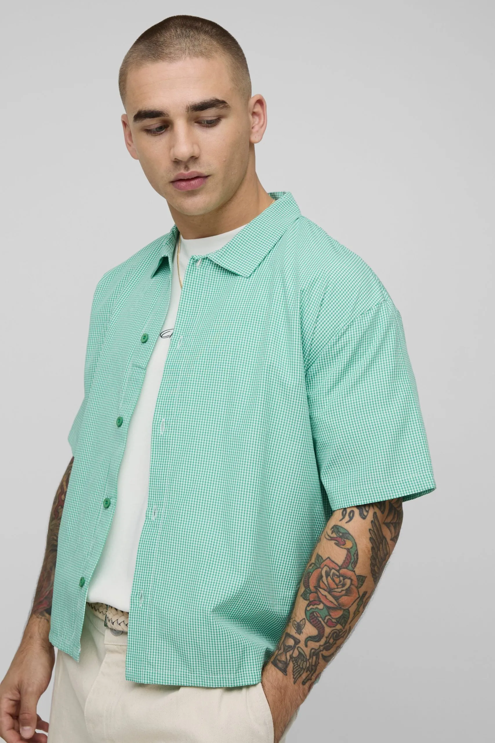 Sale!Oversized Boxy Micro Check Collared Shirt