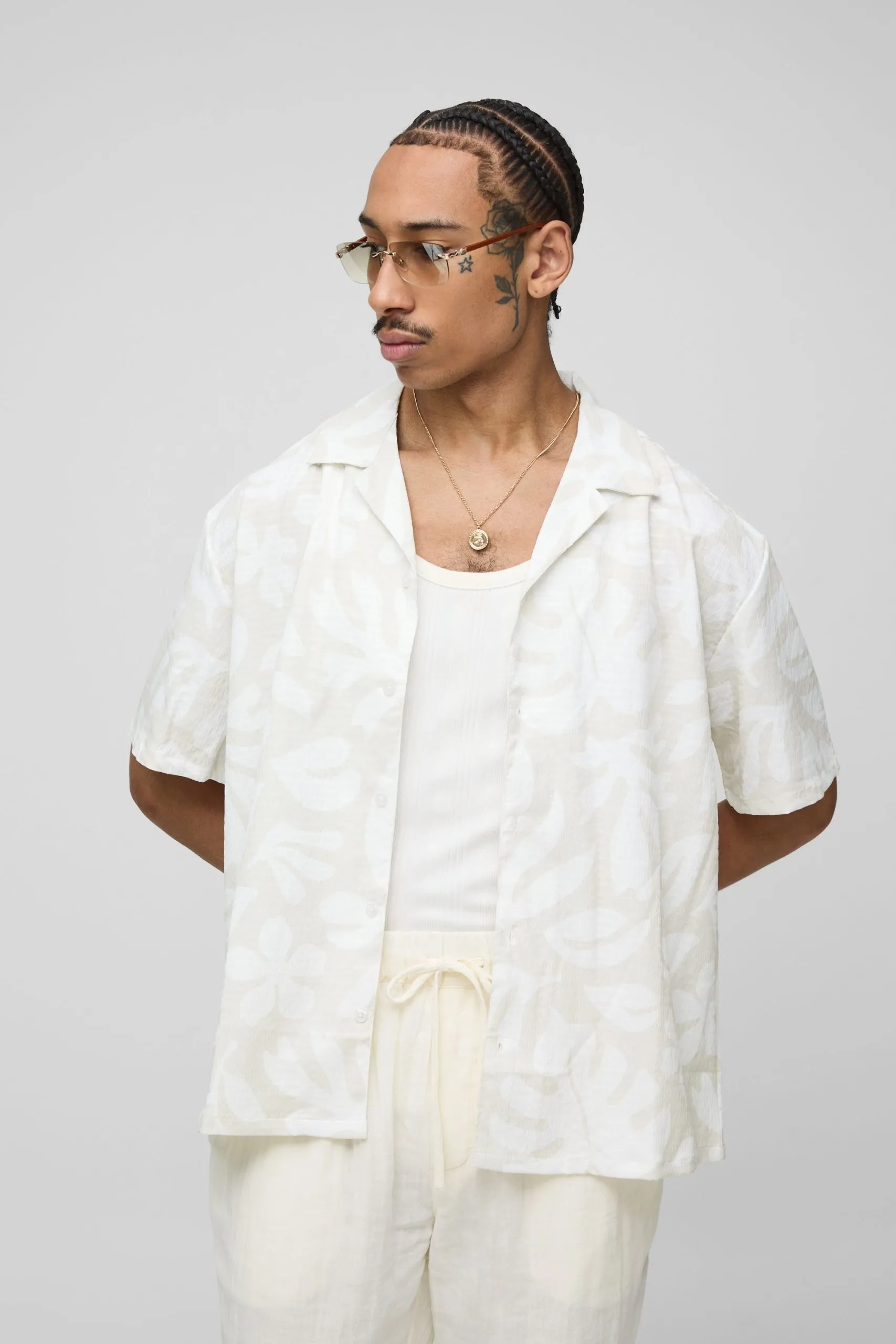 Oversized Open Weave Palm Tree Jacquard Shirt