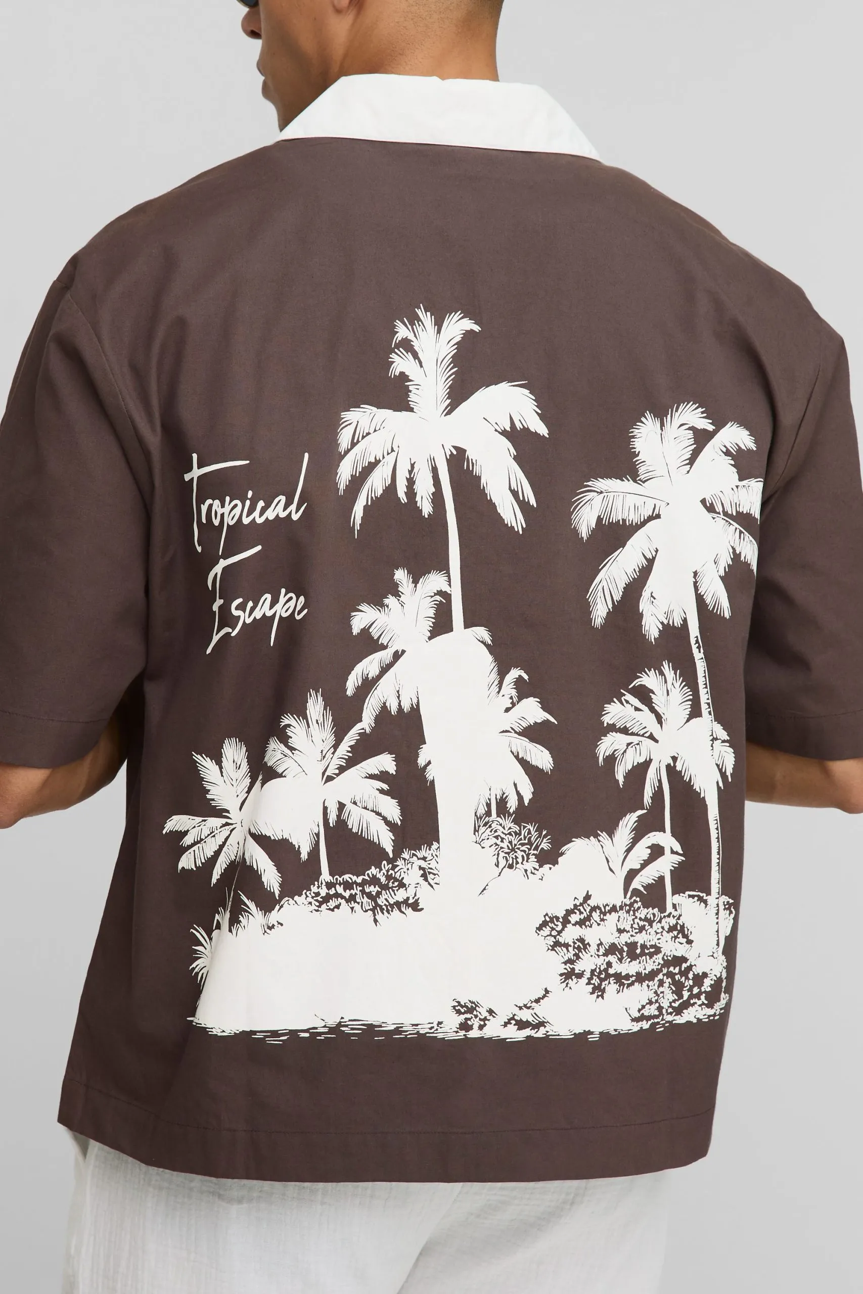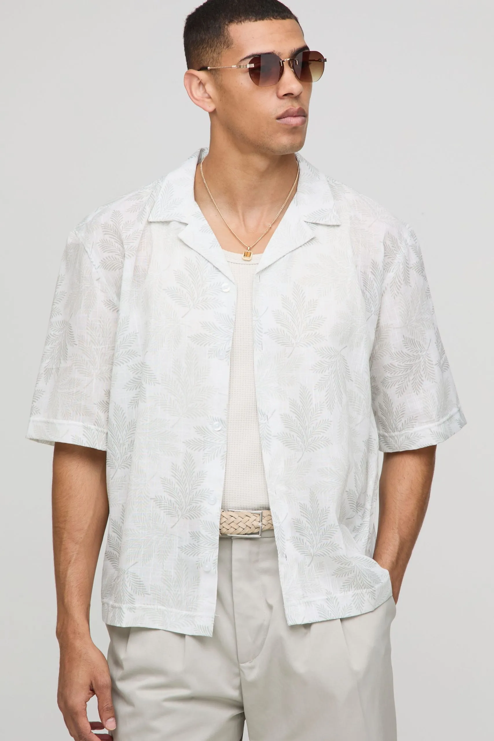 • Oversized Open Weave  Palm Tree Jacquard Shirt