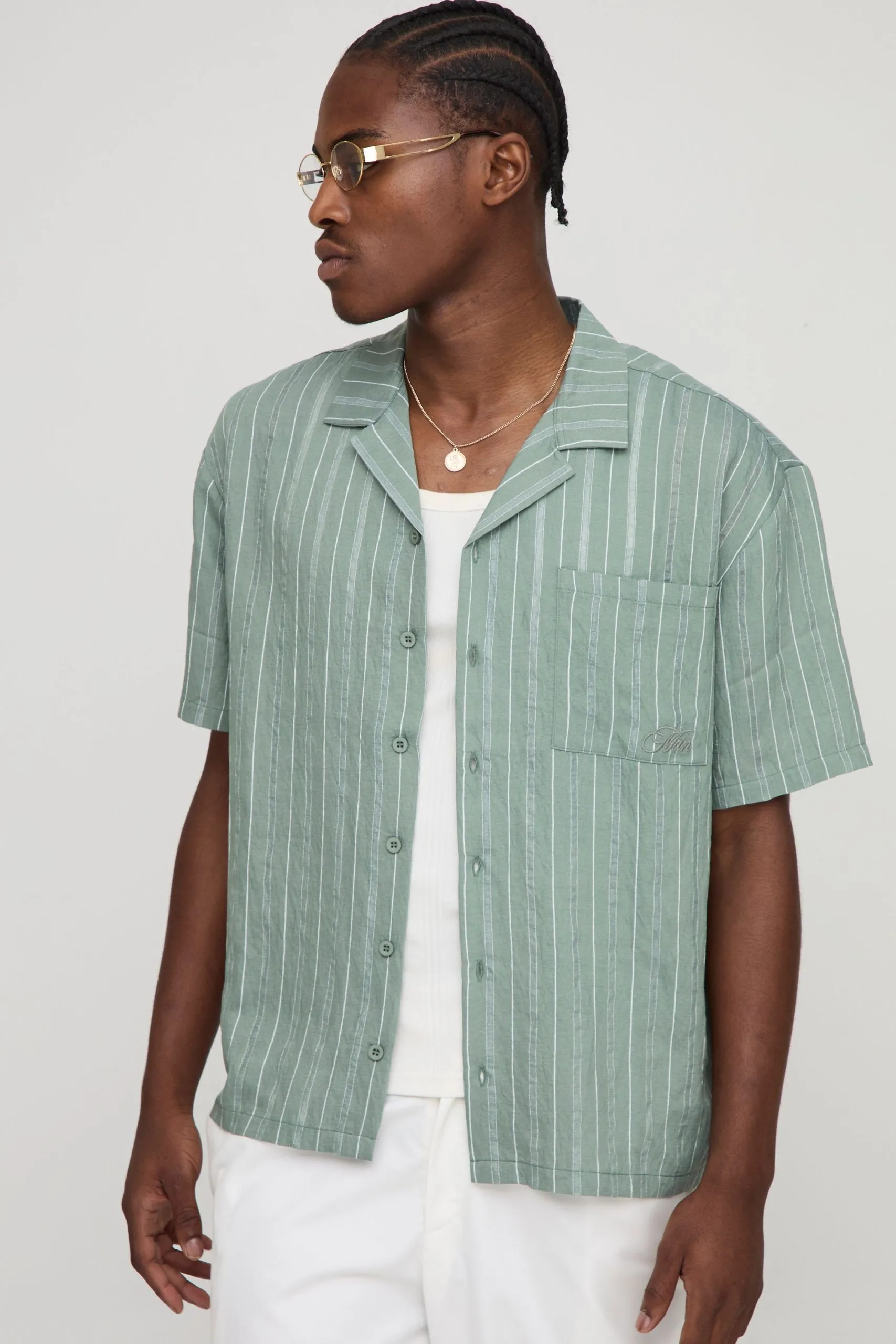 • Oversized Revere Embroidered Stripe Short Sleeve Shirt