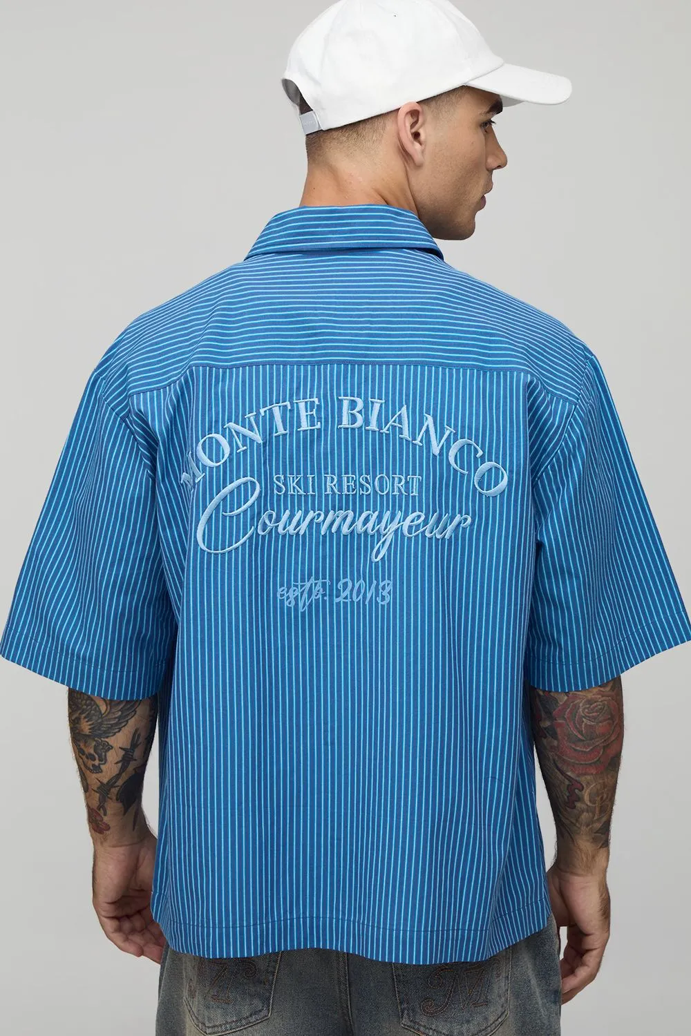 • Oversized Monte Bianco Embroidered Stripe Short Sleeve Shirt