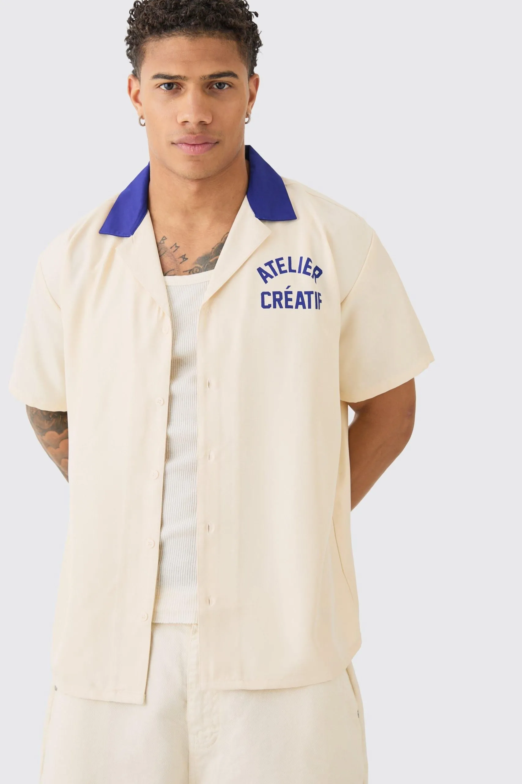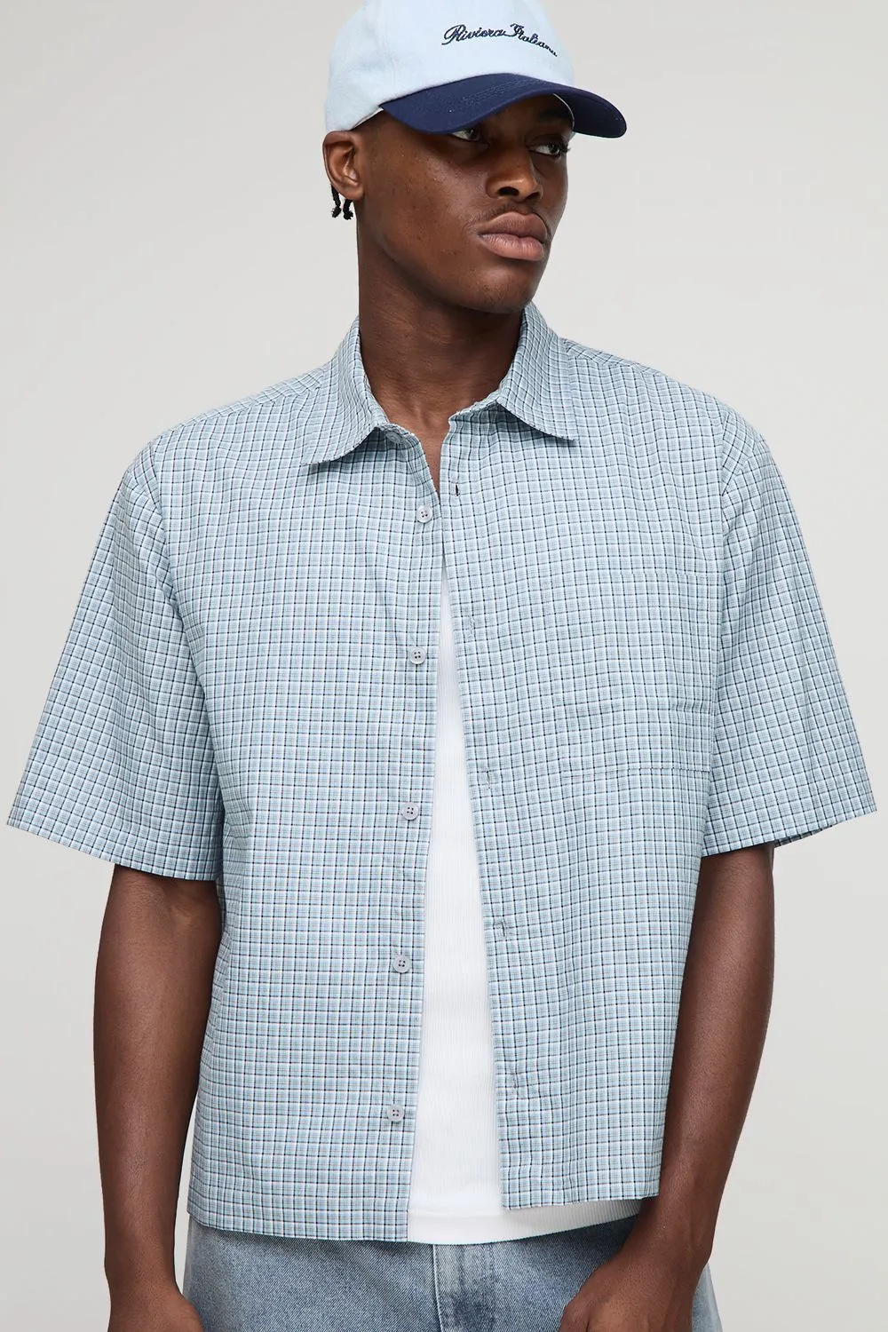 Sale!Oversized Short Sleeve Embroidered Micro Check Shirt