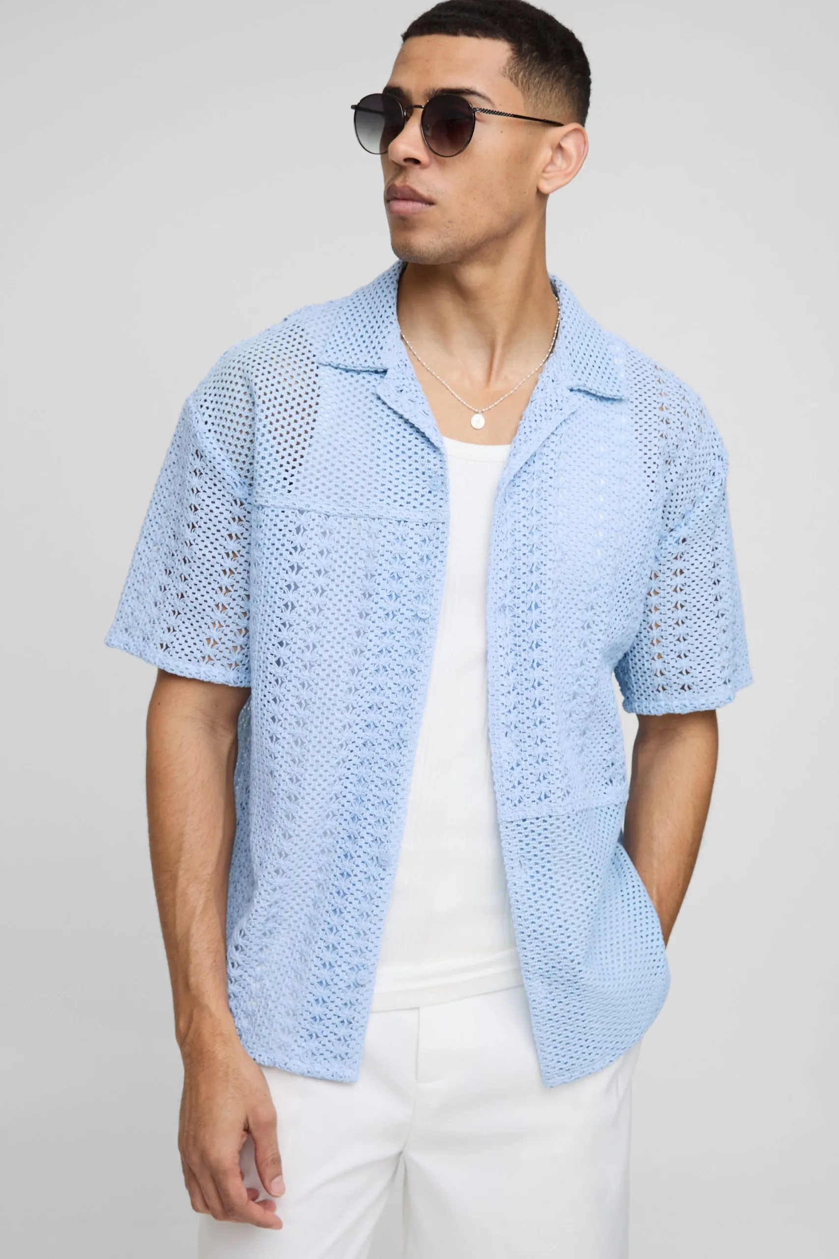 Sale!Oversized Revere Zig Zag Open Weave Panel Shirt