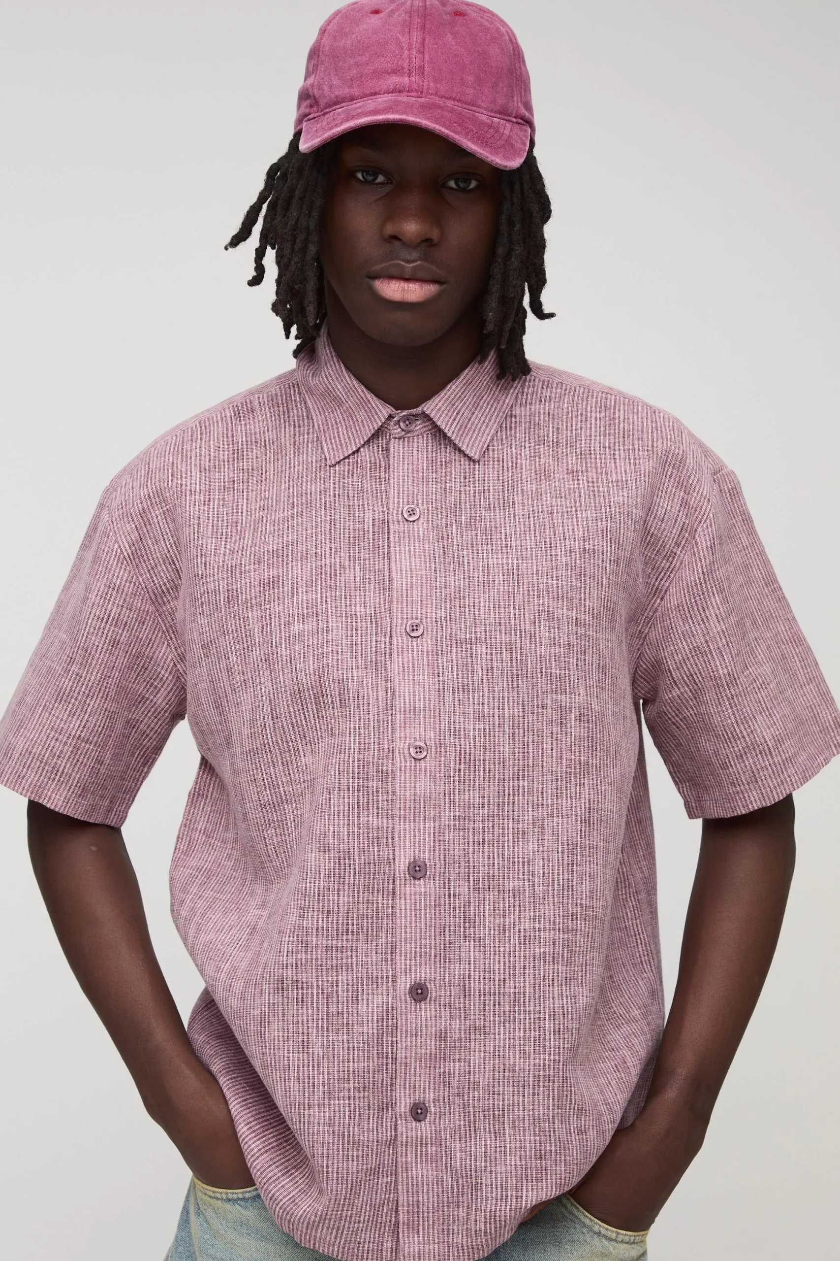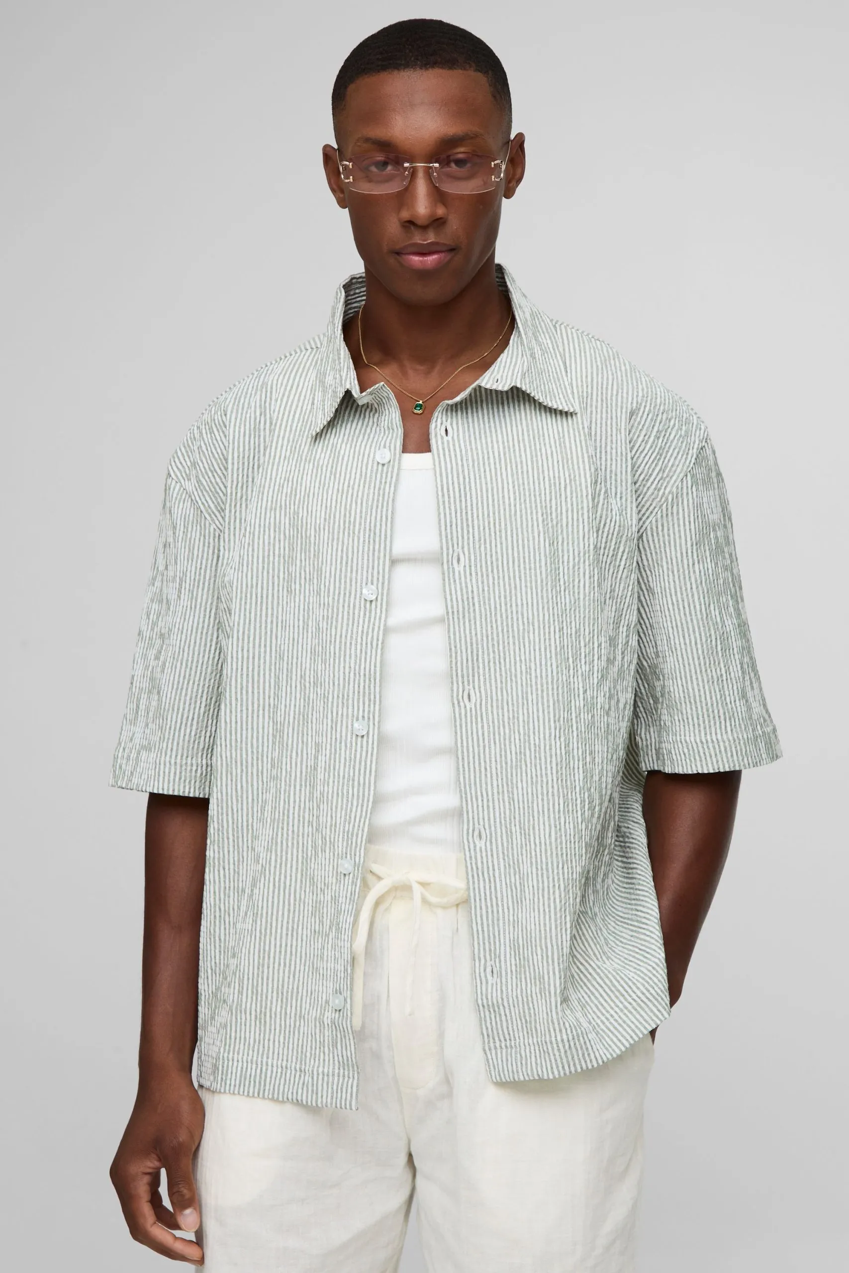 Sale!Oversized Seersucker Stripe Collared Shirt