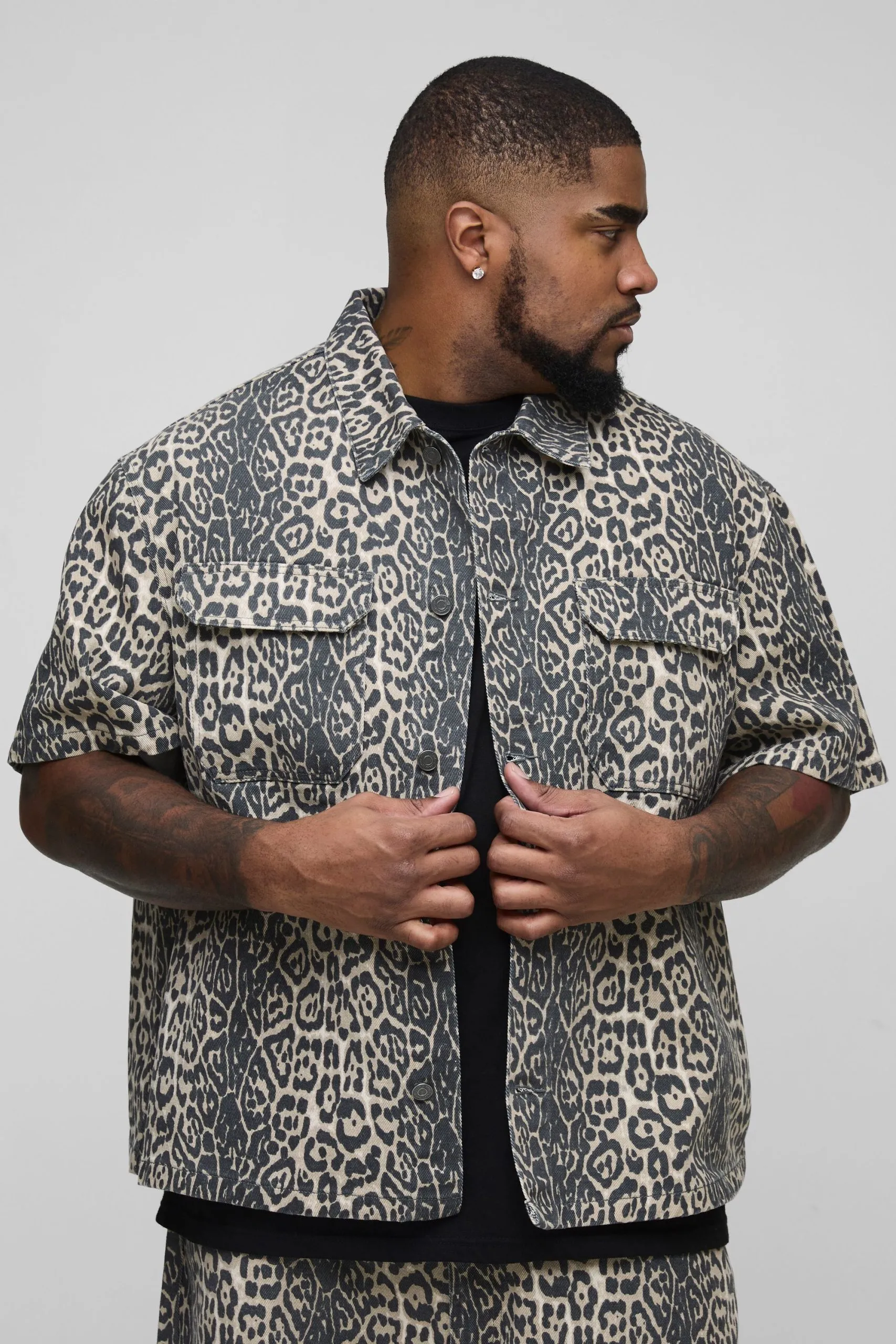 Plus Wash Leopard Boxy Fit Denim Shirt
