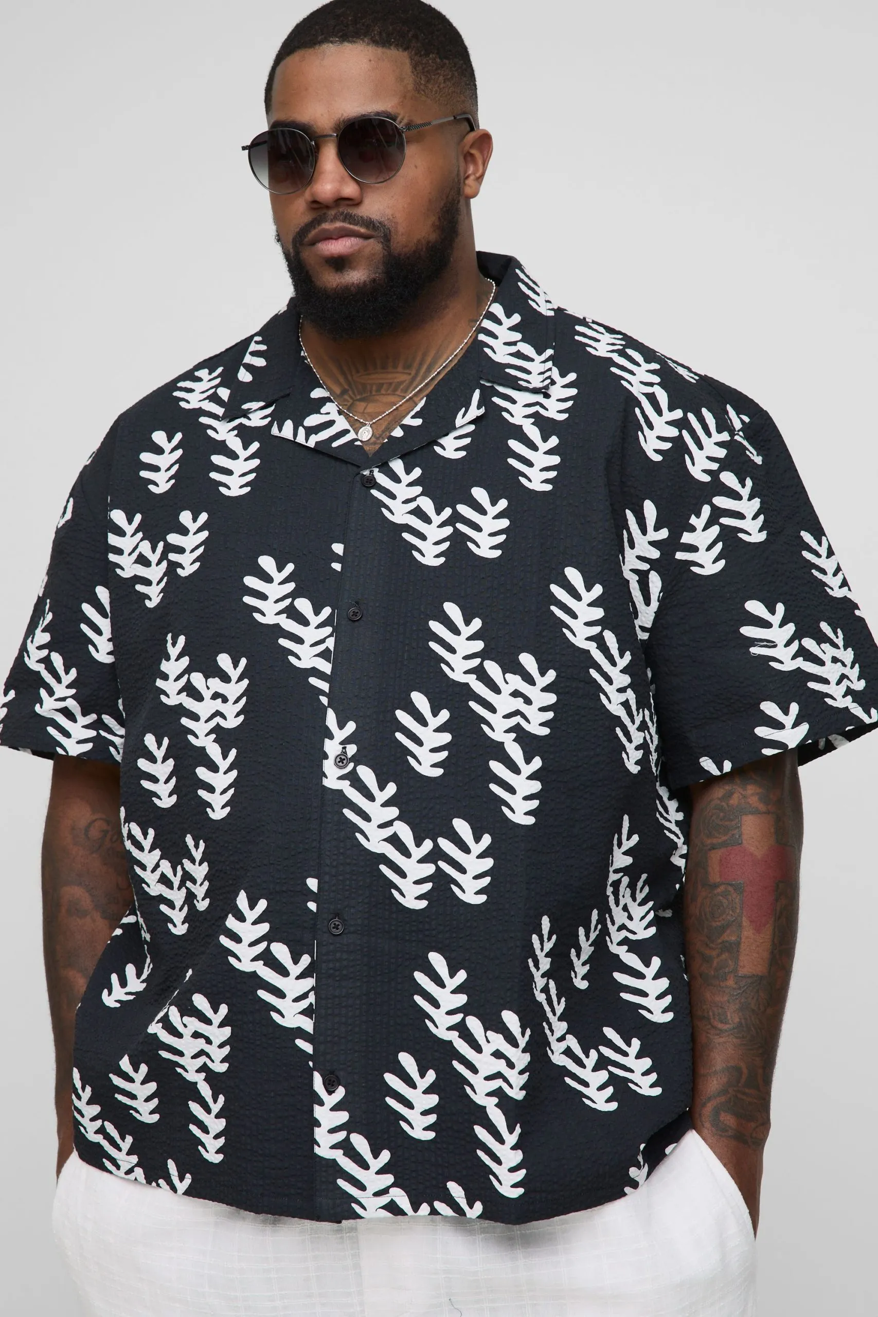 • Plus Seersucker Oversized Boxy Floral Revere Shirt