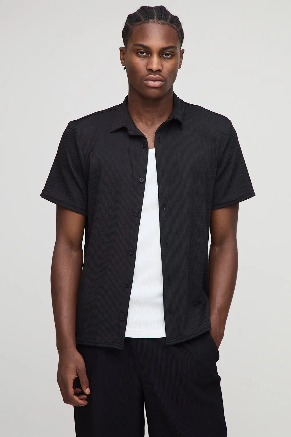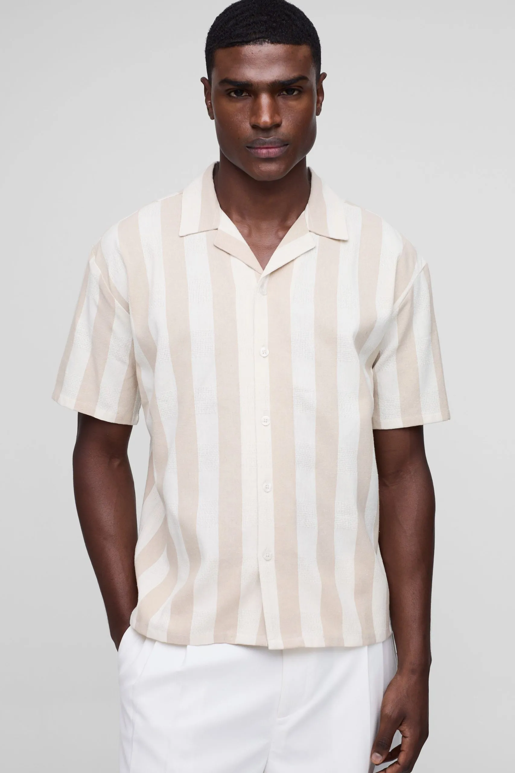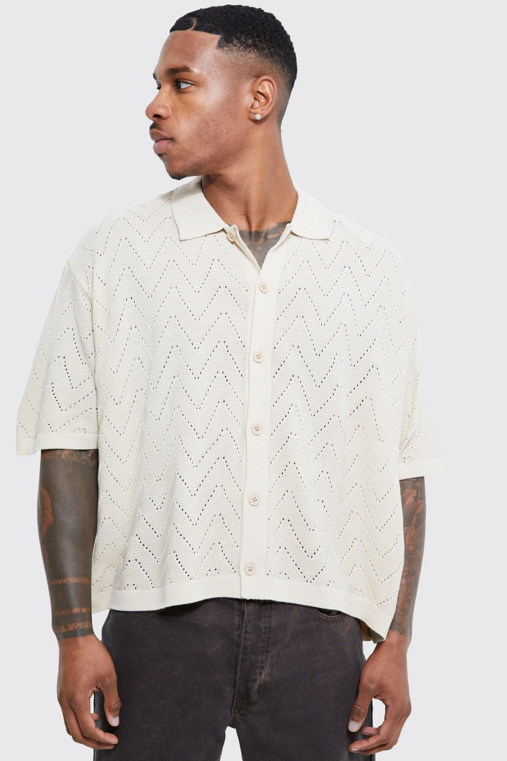Short Sleeve Boxy Open Stitch Knitted Shirt