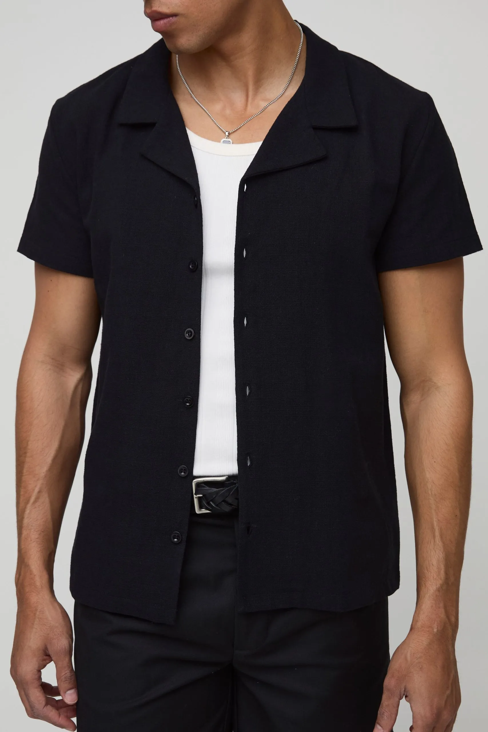 Regular Fit Linen Look Revere Short Sleeve Shirt